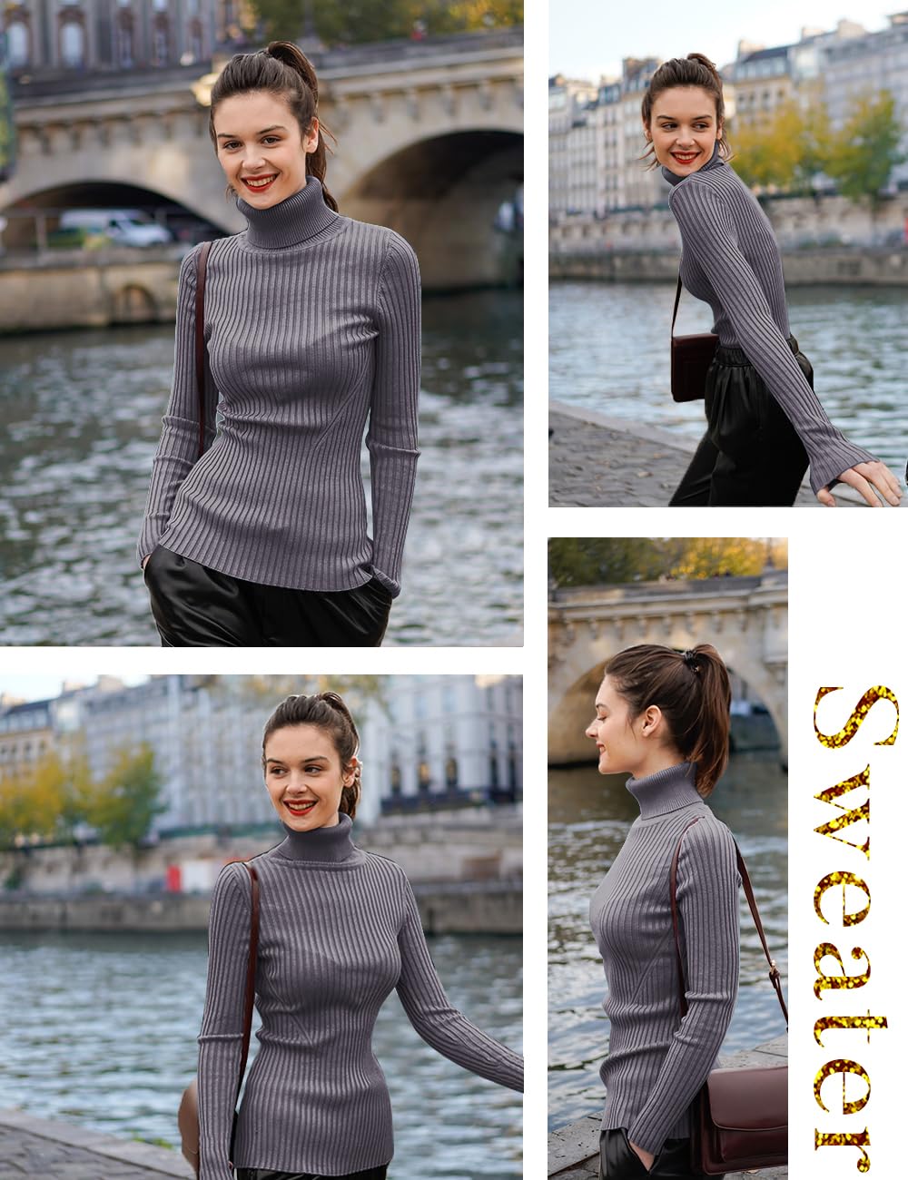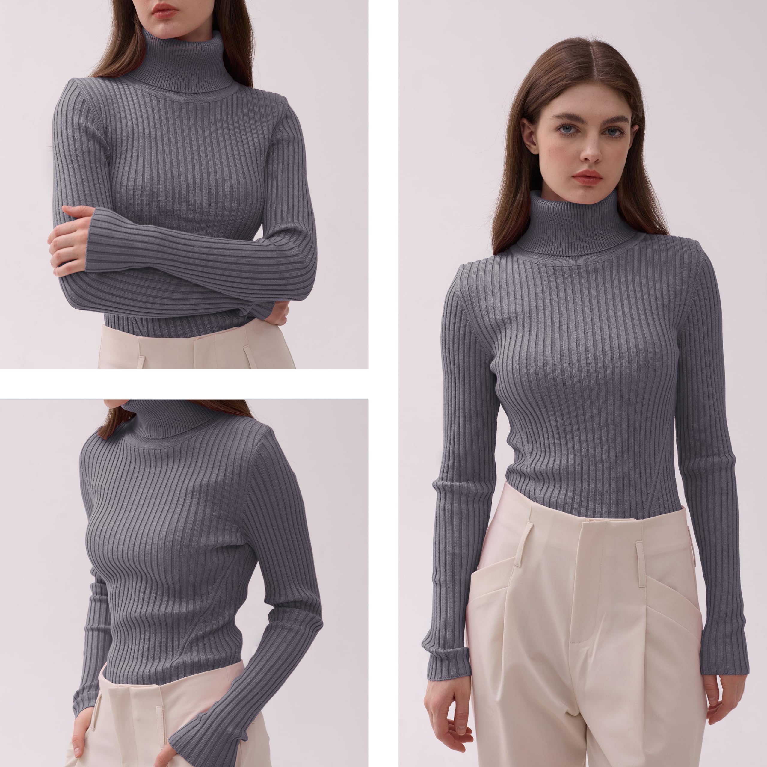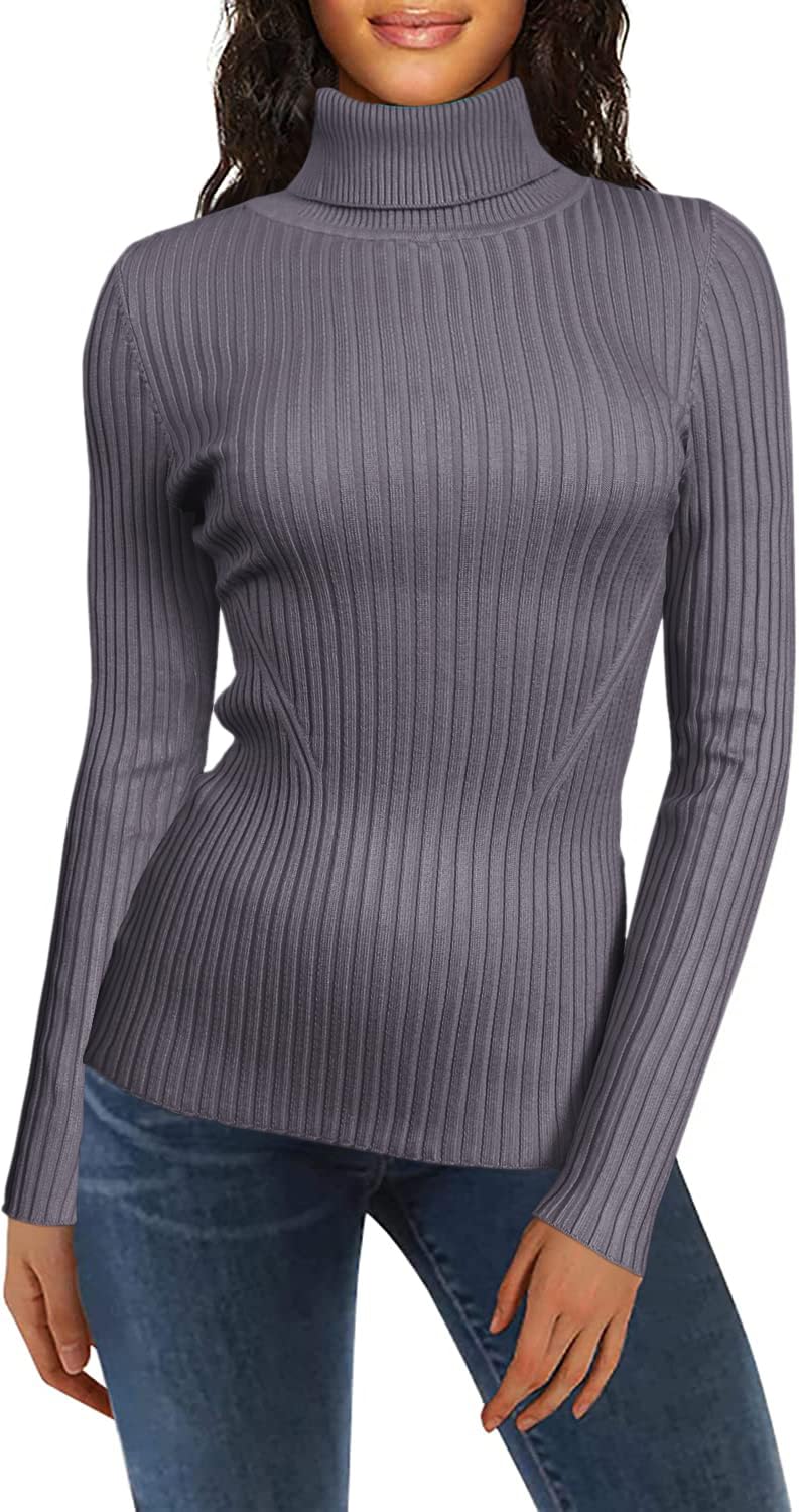 Turtle Neck Ribbed Sweater -- Knitted by Germany STROLL Machine to Ensure its High Quality Material: Highly Stretchable Viscose (Comfy Silky Smooth Feeling and Showing Off your Sexy Female Curve Silhouette)