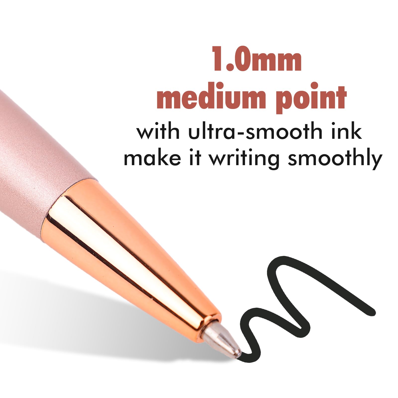 šćSmooth writingć: Click pen, durable, suitable for long-term use; 1.0 mm medium point, black ink is easy to dry, not easy to smear to cause smudgesļ¼Easy to hold- stable metal clips, easy to connect to a laptop or pocket, easy to carry around.