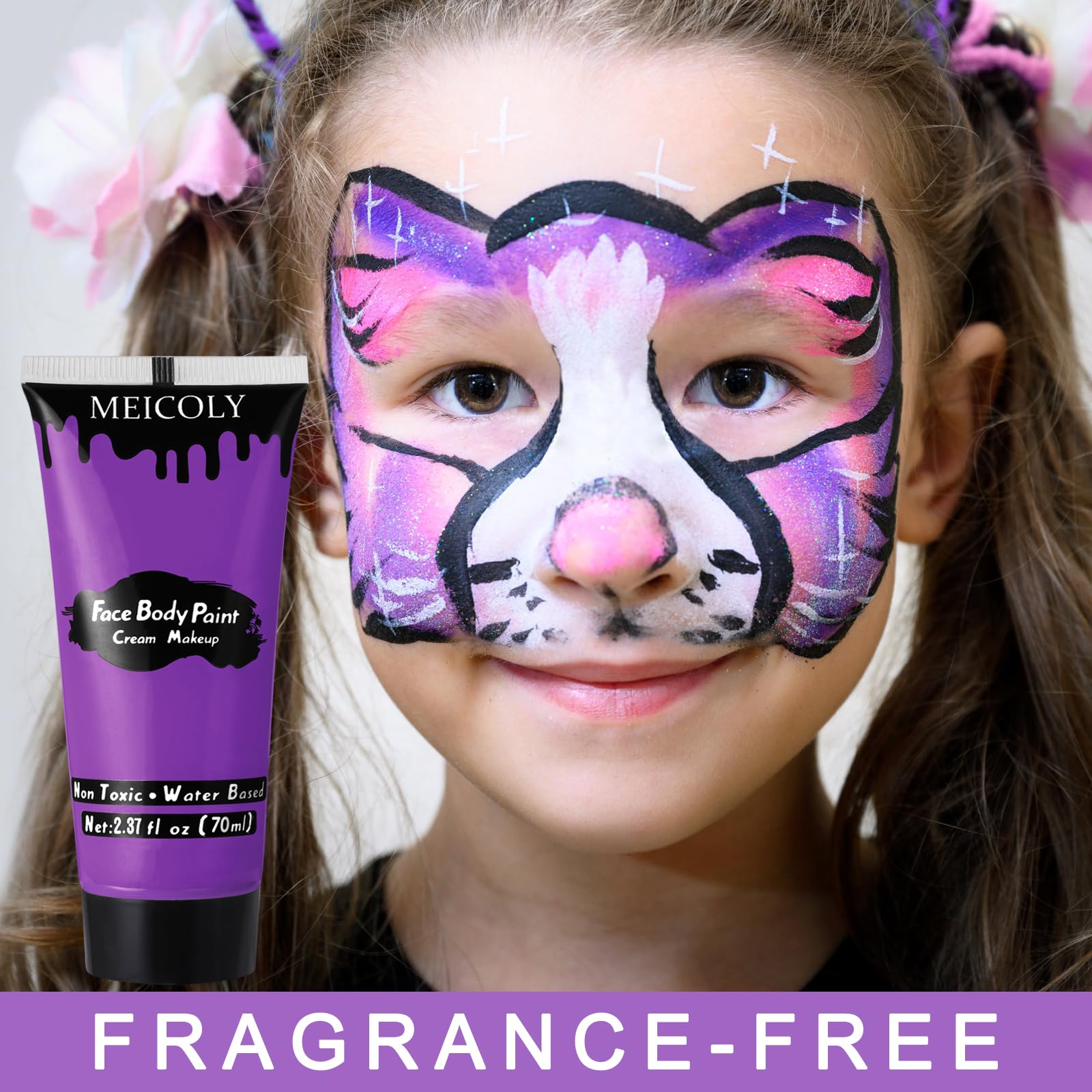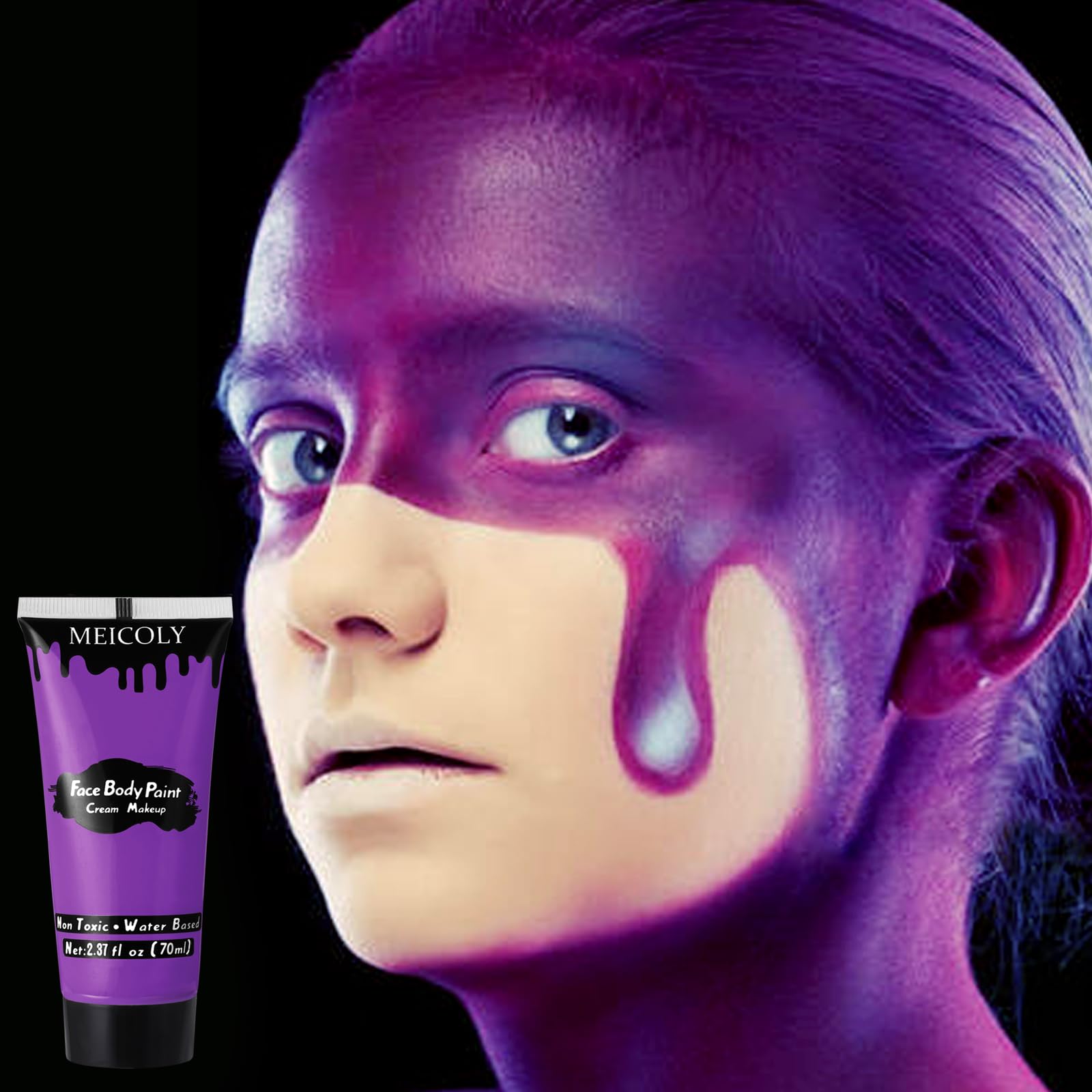 ✔Suit for Many Occasion--- MEICOLY face body paint can be used for face and body. Fit for Halloween Costume theme,fancy ball, parties, club,photoshoot,superhero designs,day of the dead makeup or other more SFX cosplay makeup.Also great purple field day accessories for kids and adults