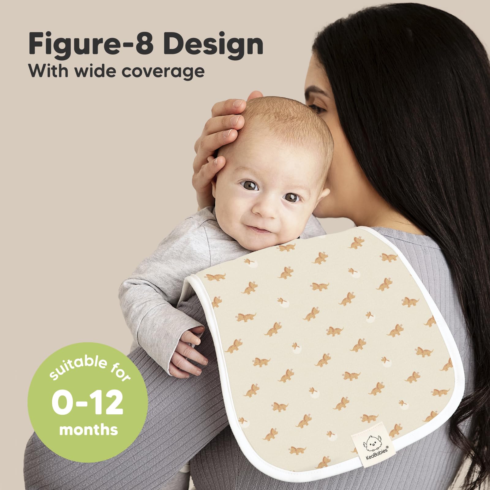 The Figure-8 Full Shoulder Coverage - Our organic baby burp clothes for baby girls and baby boys, sized at 21" x 10", are wide enough to cover your shoulders. The unique figure-8 design prevents the burp rags from slipping.