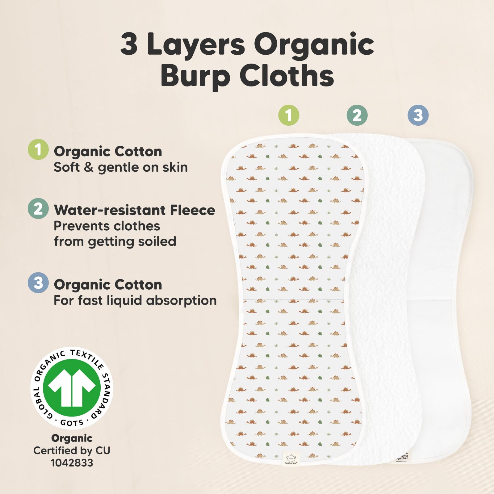 3 Layers of Protection – Our Urban Burping Cloths for babies are the perfect burp clothes for newborn; filled with quality fleece for optimum absorption to keep you dry. The layers are GOTS-certified organic cotton (Certified by CU 1042833).
