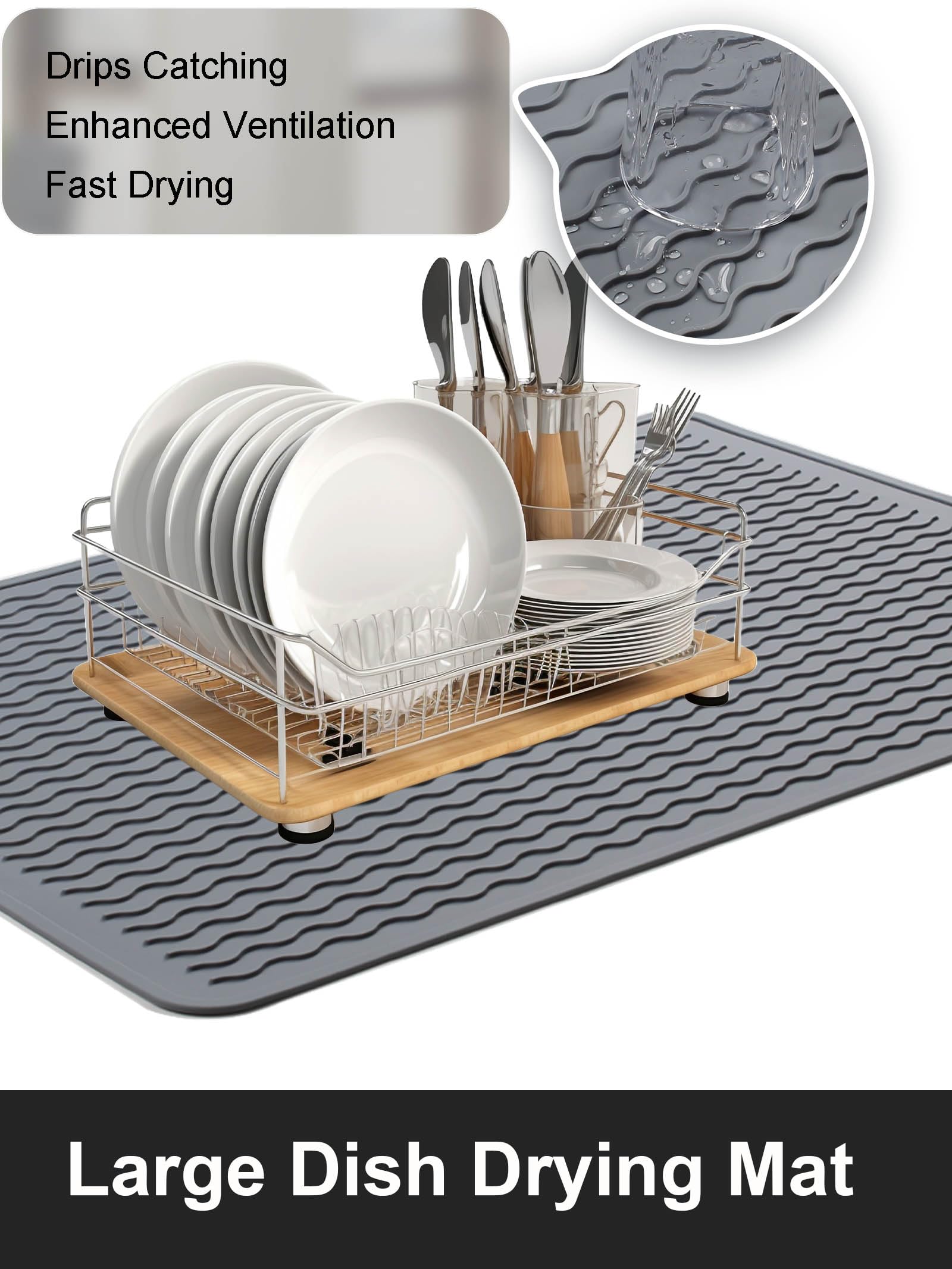 [Dish Drying Mat] This uniquely designed wave ridge can enhance air circulation for improved ventilation while capturing drips from dishes, glasses, fruits, and veggies. Its high edges and waterproof bottom prevent spills, keeping countertops dry and pristine, making it the perfect kitchen drying mat.