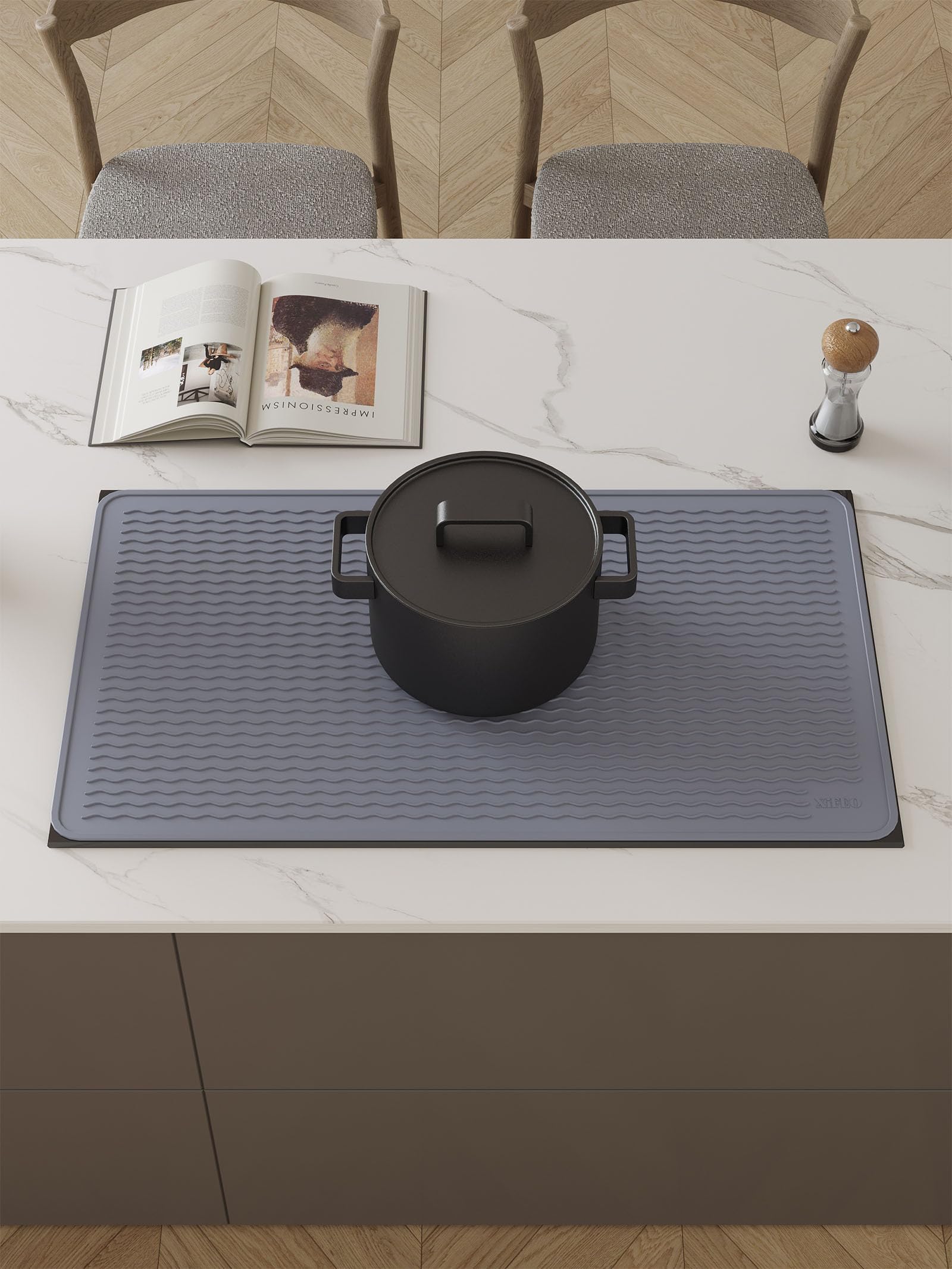 [Silicone Trivet Mat] Elevated wave patterns ensure efficient heat dissipation, while our silicone mat withstands temperatures up to 450°F, safeguarding your surfaces from heat damage. Caution: Do not cover induction cookers exceeding 450°F or place over active cookers.