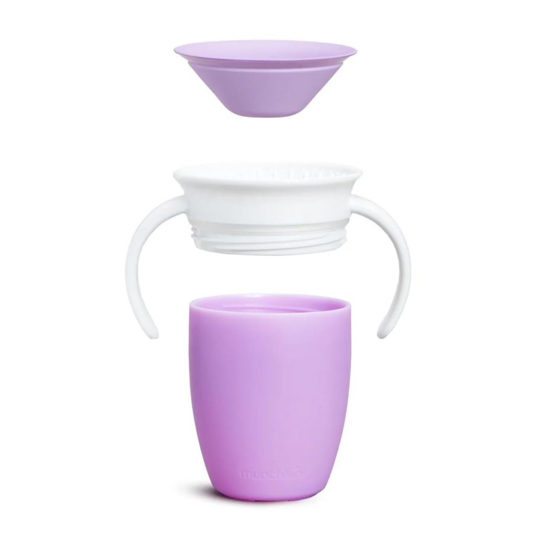 Effortless Hydration, Zero Mess The Munchkin Miracle 360° Cup is a game-changer for parents seeking spill-proof sippy cups for toddlers 3 years old and baby cups for 12-18 months. Its innovative 360-degree drinking edge eliminates spills completely, making it a reliable no-spill cup for toddlers and a first years sippy cup. With a leak-proof design and easy-to-hold handles, this toddler cup for 2-year-olds ensures mess-free hydration during mealtime or playtime. Designed for Tiny Hands Crafted with little hands in mind, the Munchkin Miracle 360° Cup features ergonomic handles that make it a breeze for toddlers to grip and sip. This spill-proof sippy cup is an excellent choice as a training cup for babies 6 months and older, helping them transition seamlessly from bottles to cups. The dentist-recommended spoutless design promotes proper oral development, making it an ideal toddler drinking cup and baby training cup. Effortless Cleaning, Lasting Durability Maintaining cleanliness is a breeze with the Munchkin Miracle 360° Cup. Its one-piece construction, free of extra valves or parts, ensures easy cleaning, while the BPA-free material and top-rack dishwasher-safe design prioritize your child's health. With a 7 oz capacity suitable for water, milk, or juice, this sippy cup's no-spill and sippy cup with handles design is built to last, accompanying your little one through every stage of development. -Leak-proof -Easy to hold -360° drinking edge -Automatically seals -BPA-free