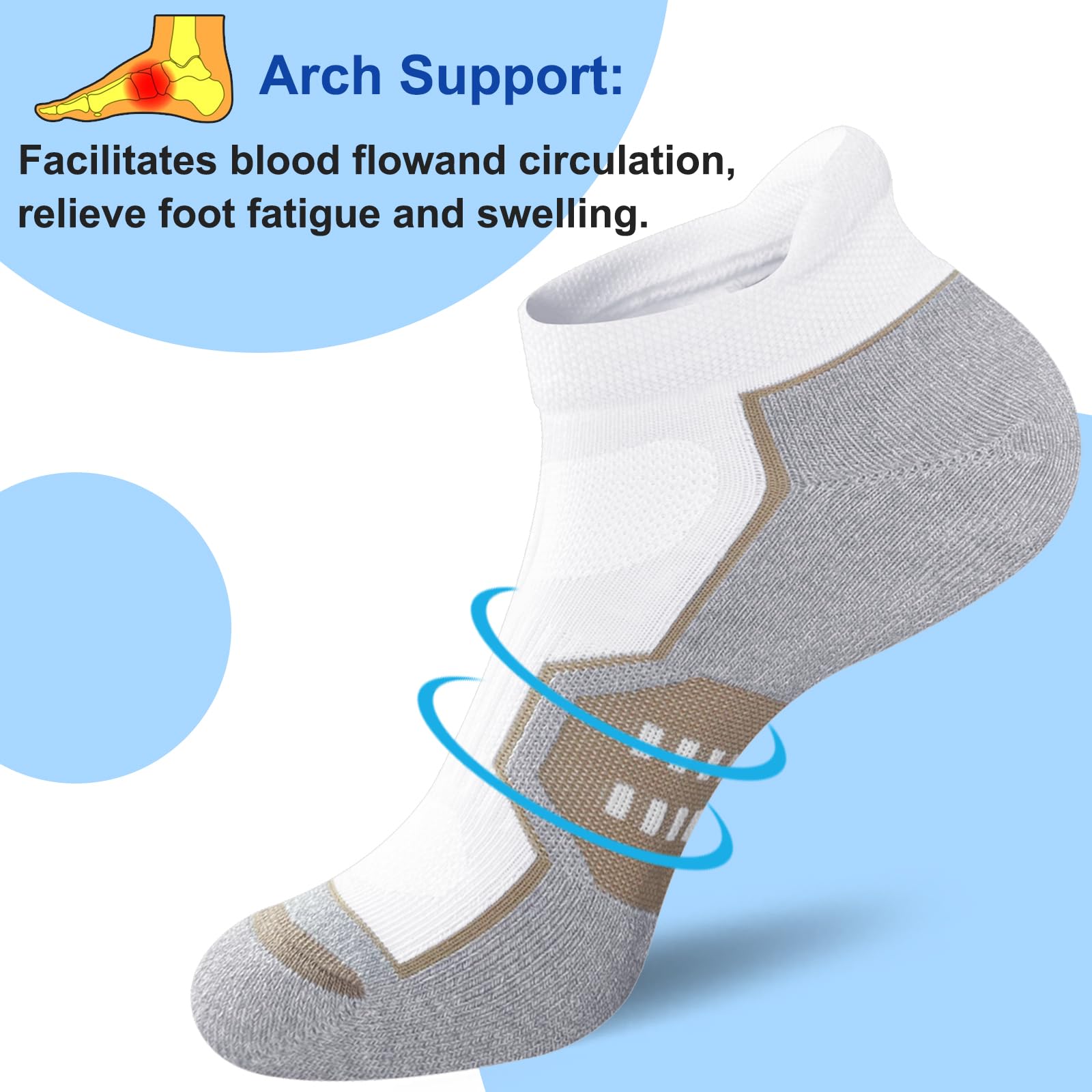 【Comfortable & Stable Arch Support】Our womens ankle socks designed with just the right amount of arch compression to help relieve foot fatigue and swelling, enhancing stability for a perfect fit.