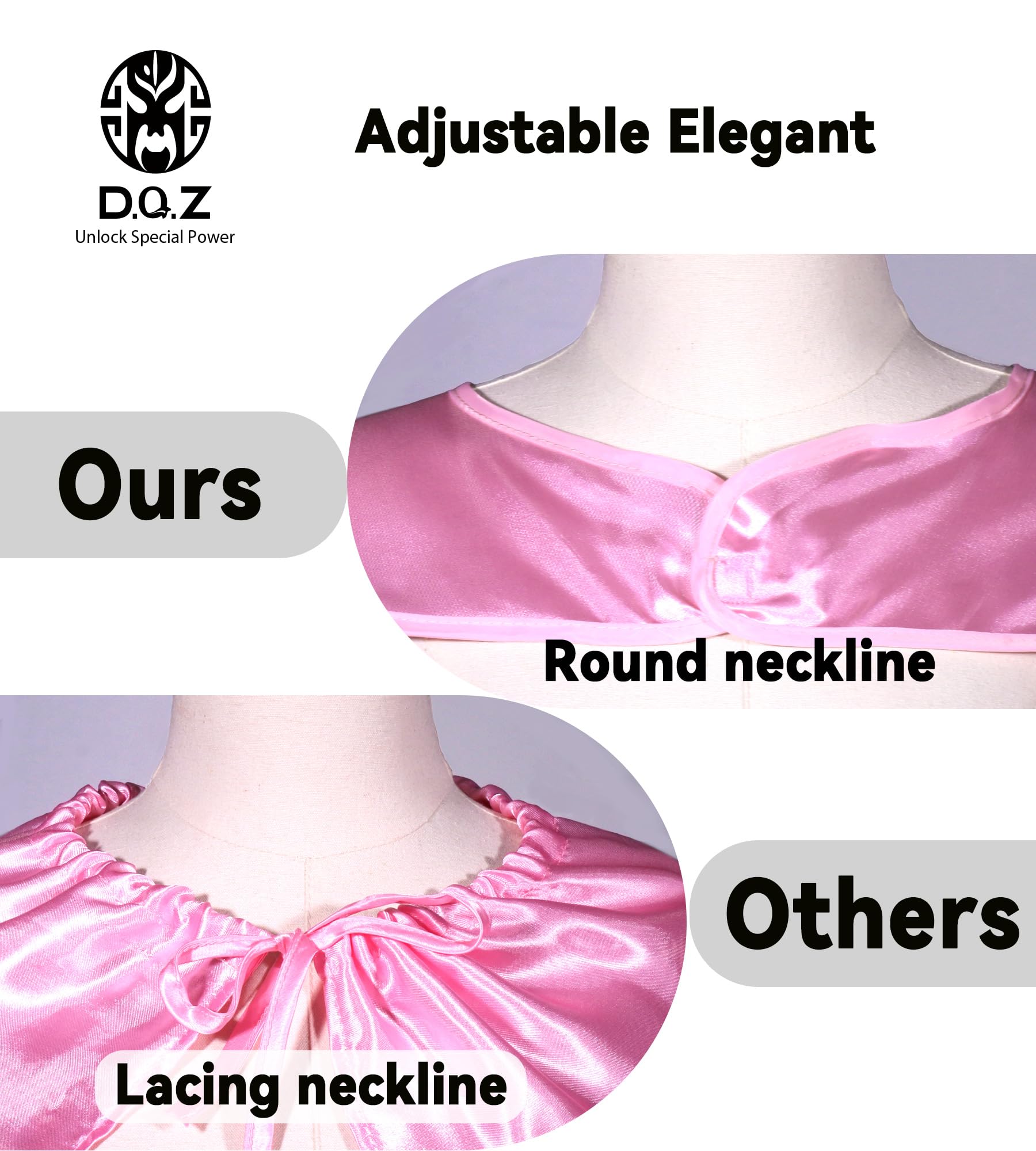 Adjustable Neckline: Round neckline with adjustable Hook and loop fastener, is more comfortable and elegant. It is easy for you to wear this superhero cape whatever occasions you are.