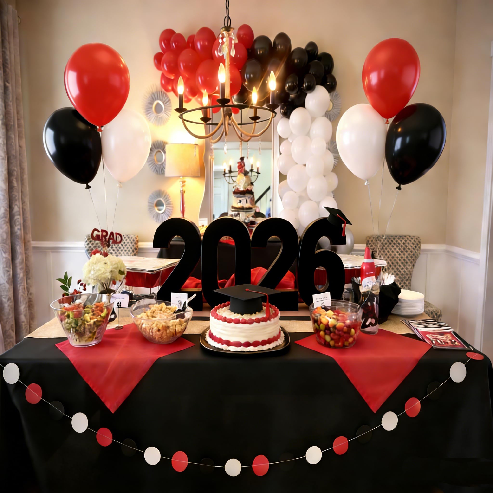 【Easy to coordinate】: This black red confetti balloons set is versatile, suitable for Casino Party, Race Car Party, wedding, prom, engagement, anniversary, graduation, banquet, Christmas, Valentine's Day, etc.black and red balloons can make balloon arches, heart-shaped backdrop or balloon bouquets.