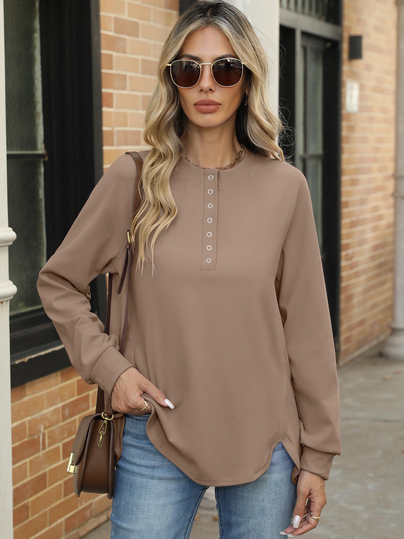 Features - Women’s fall tunic top, long sleeves, button - detailed henley collar. Ideal for daily wear, parties, dates, vacations, office, family gatherings, etc., bringing a chic and comfortable look.