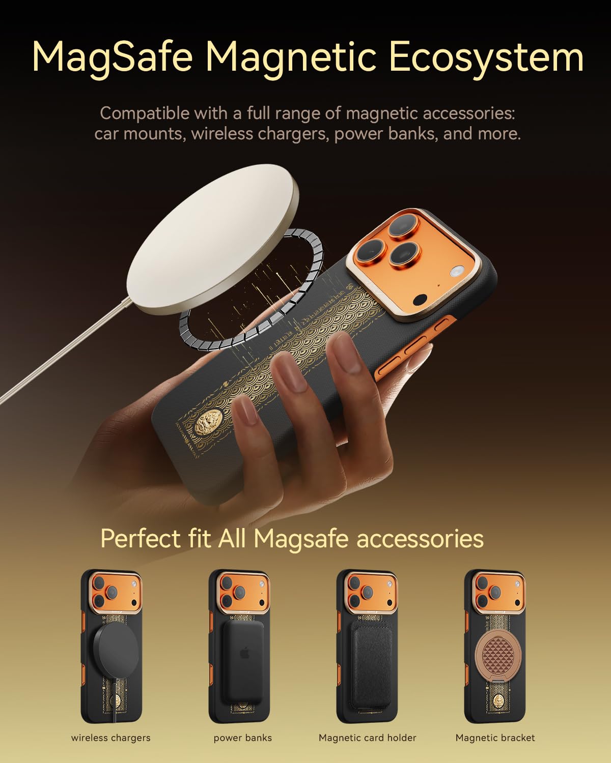 [TURBOCHARGED MAGNETIC ECOSYSTEM – NEVER MISS A CHARGE] Engineered with 36 upgraded N52H thermoresistant magnets, delivering a 50% stronger magnetic lock for unwavering attachment to all for MagSafe chargers and accessories. Enjoy seamless, high-speed wireless charging and perfect alignment every time, with military-grade reliability that won't shift, detach, or disrupt your flow of power—or prosperity.