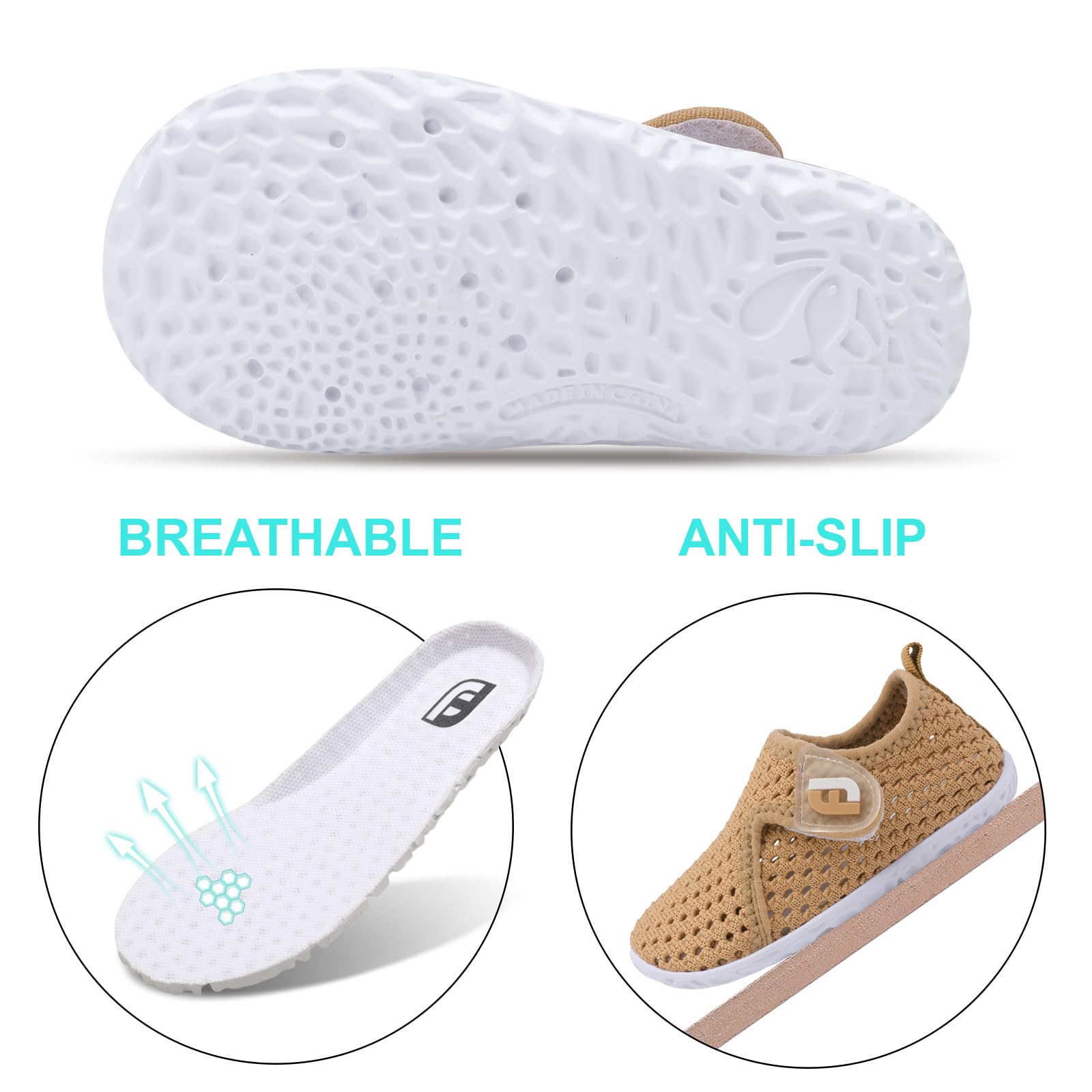 Non-slip Outsole: Non-slip EVA sole make sure of shock absorption performance and protects your child’s feet from being hurt by sharp objects