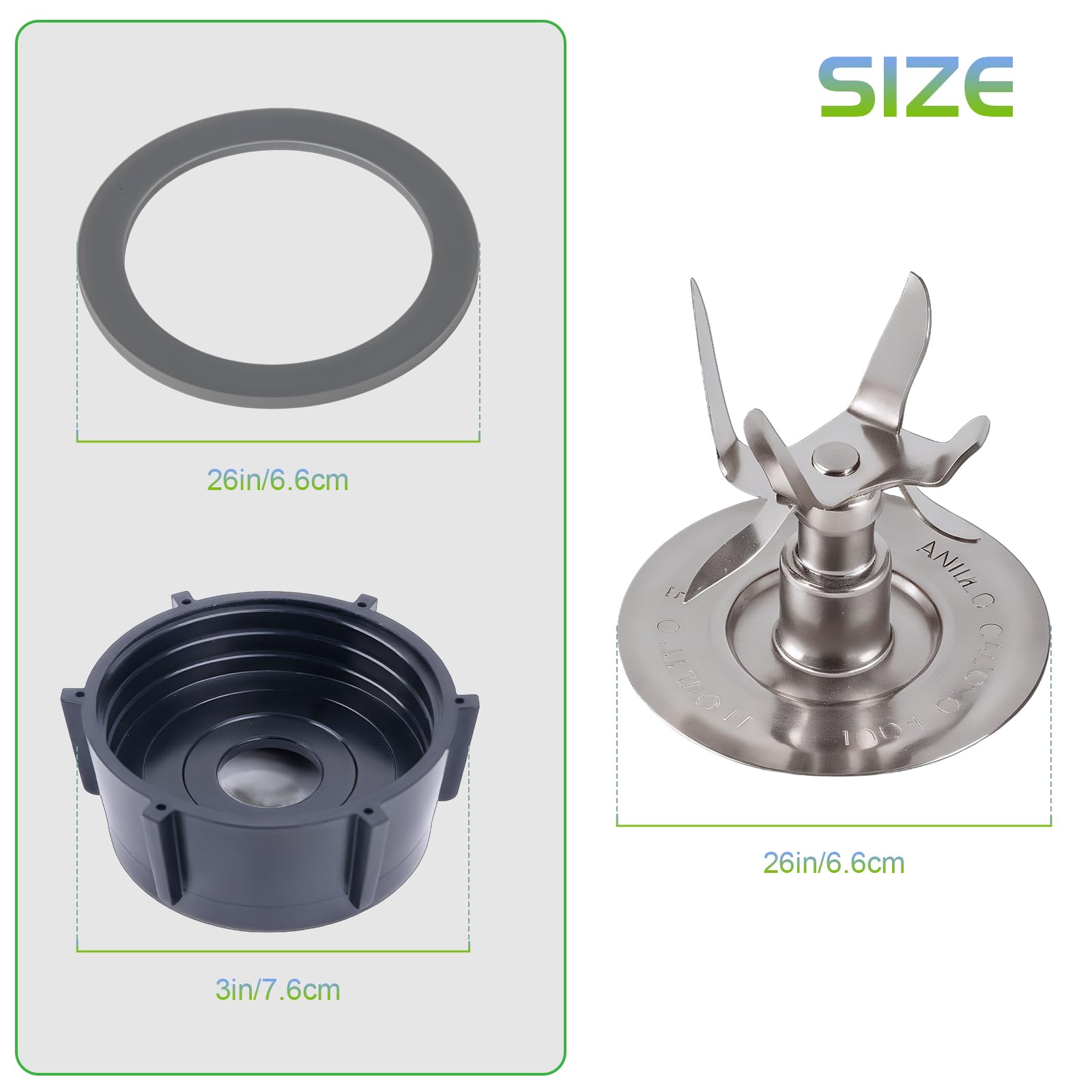 What's Included: This 4-piece replacement kit includes 1x 6-fin stainless steel ice-crushing blade, 1x blender jar base cap, and 2x durable rubber O-ring seal gaskets for a complete refresh of your Oster blender.
