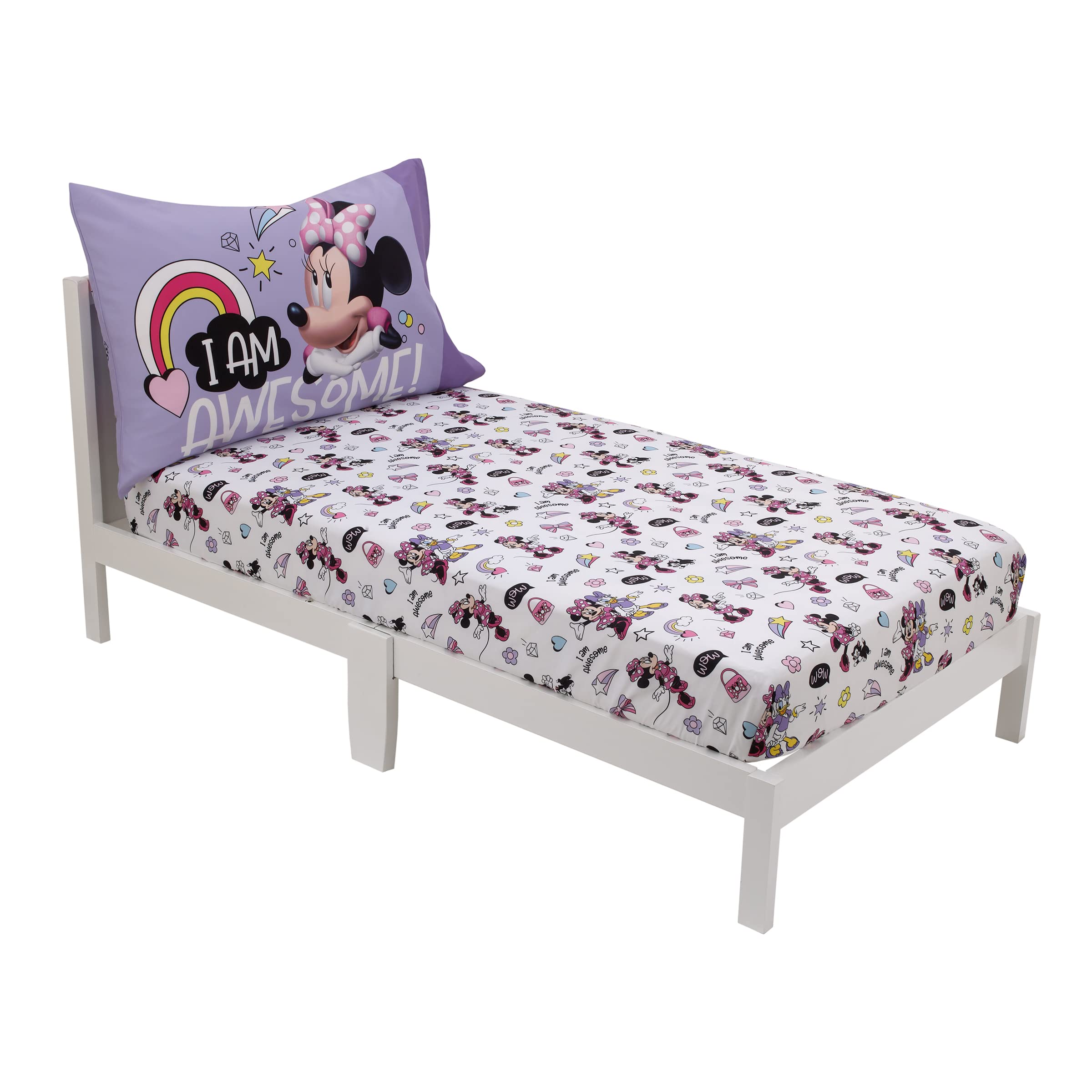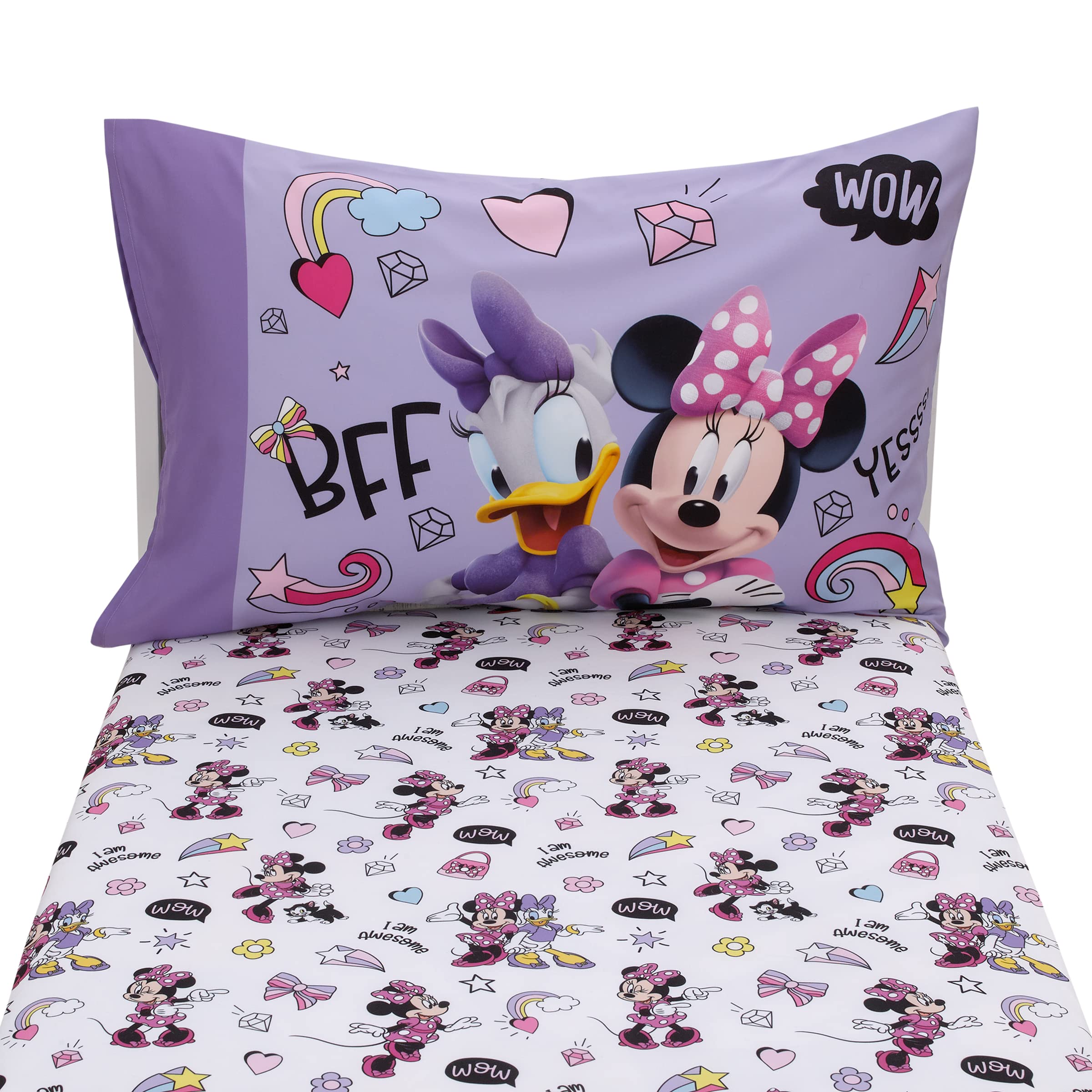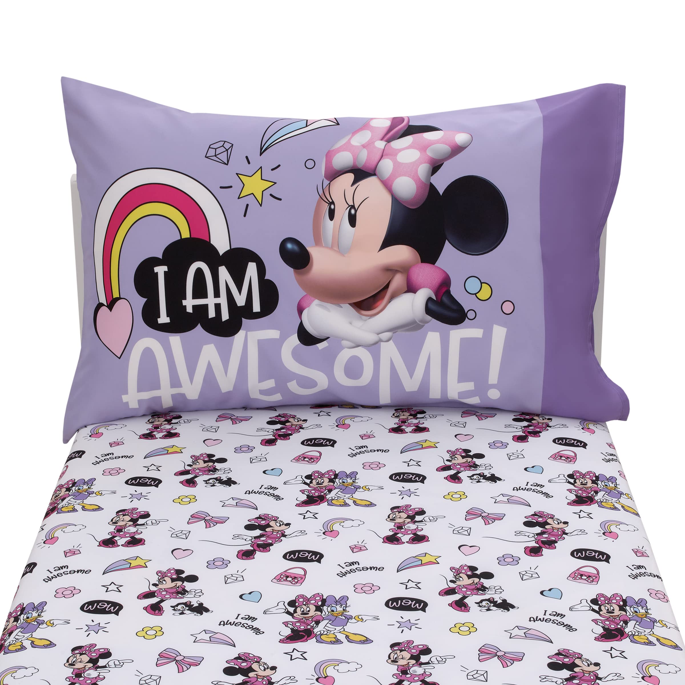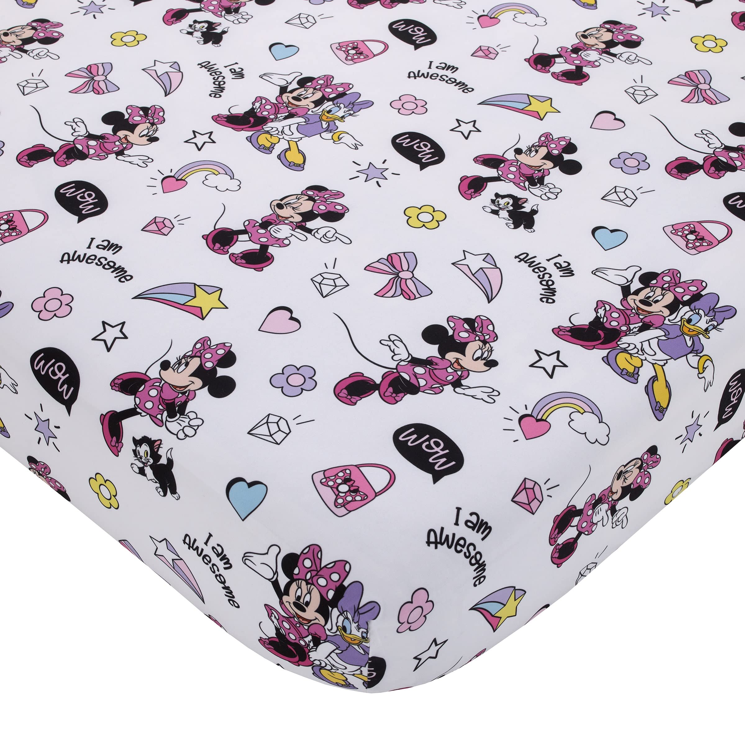 Features a fun pattern with Minnie Mouse, Daisy Duck, colorful rainbow hearts and stars!