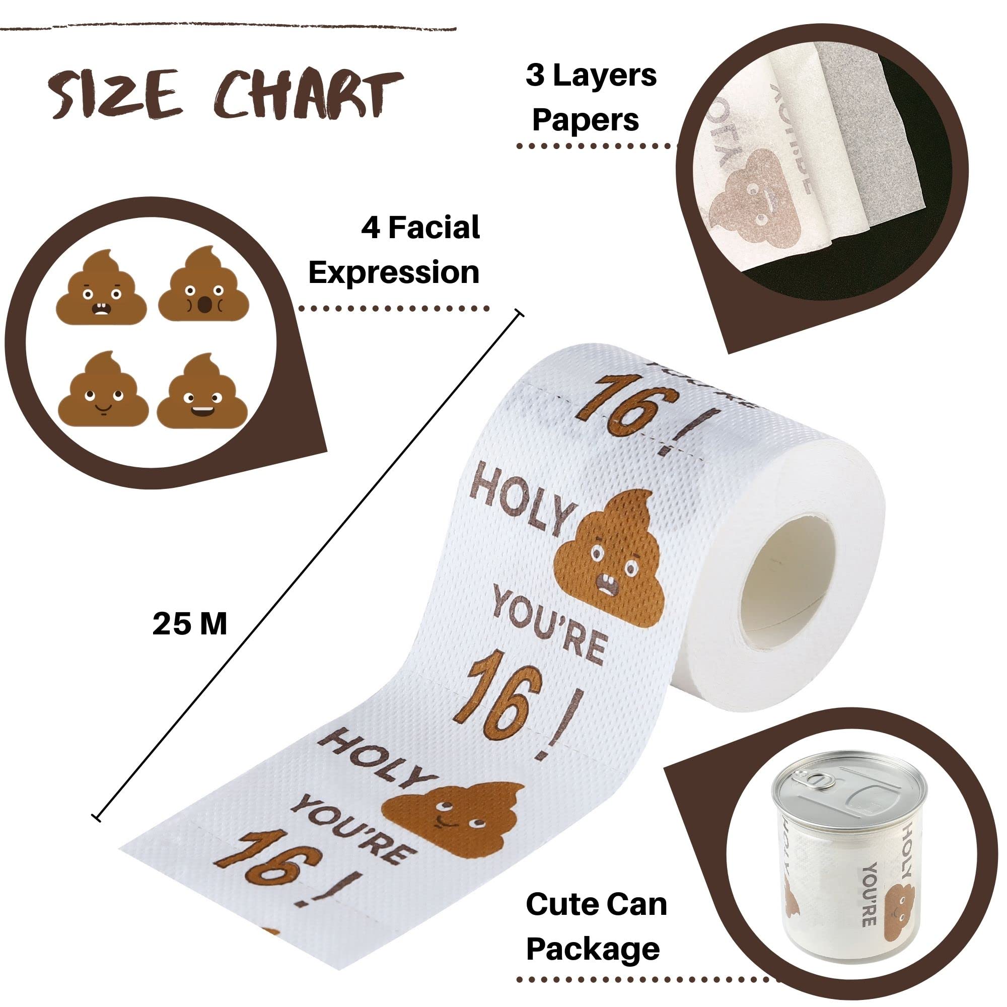 Multipurpose Prank Paper: These toilet tissue rolls can be used for various purposes on the 13th birthday of your loved one. You can use the funny wrapping paper for party decoration and party supplies, or as a birthday gift. The 60th birthday toilet paper comes in a cute gift box to show how much you care on their big day.