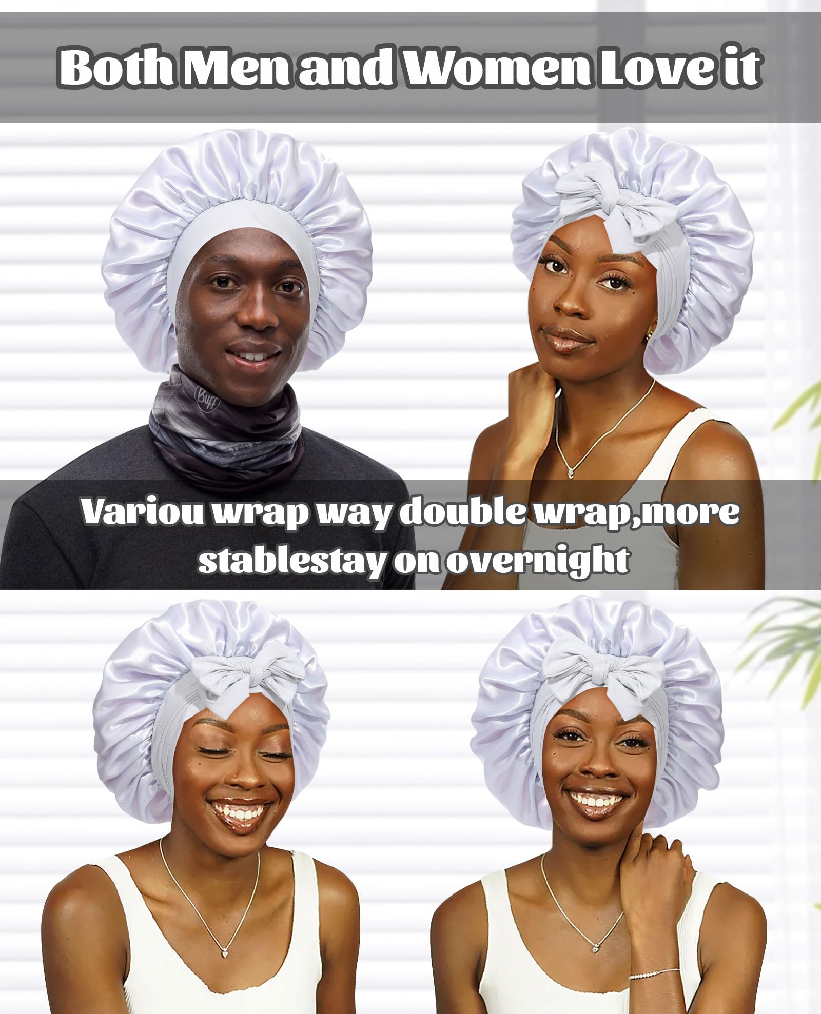 Premium Satin Reusable Double-Layer Sleep Cap:Satin cap is made of high-quality, lightweight 100% polyester fabric, soft and breathable. Double-layer nightcap, can be worn on both sides, double-layer hair protection