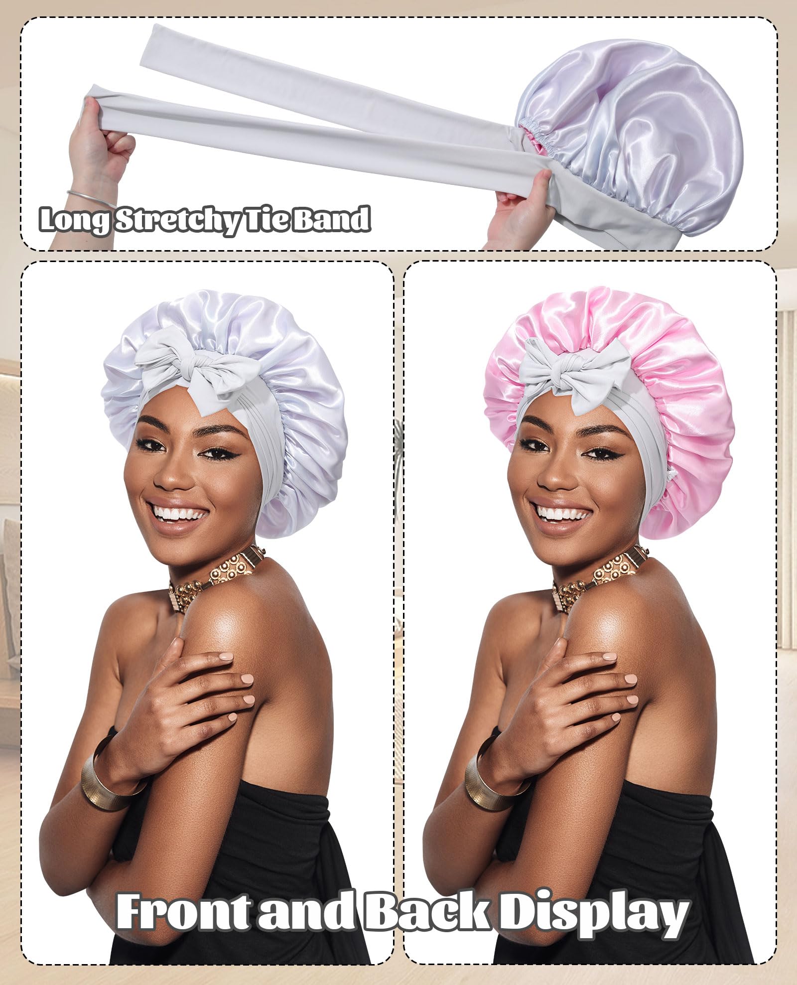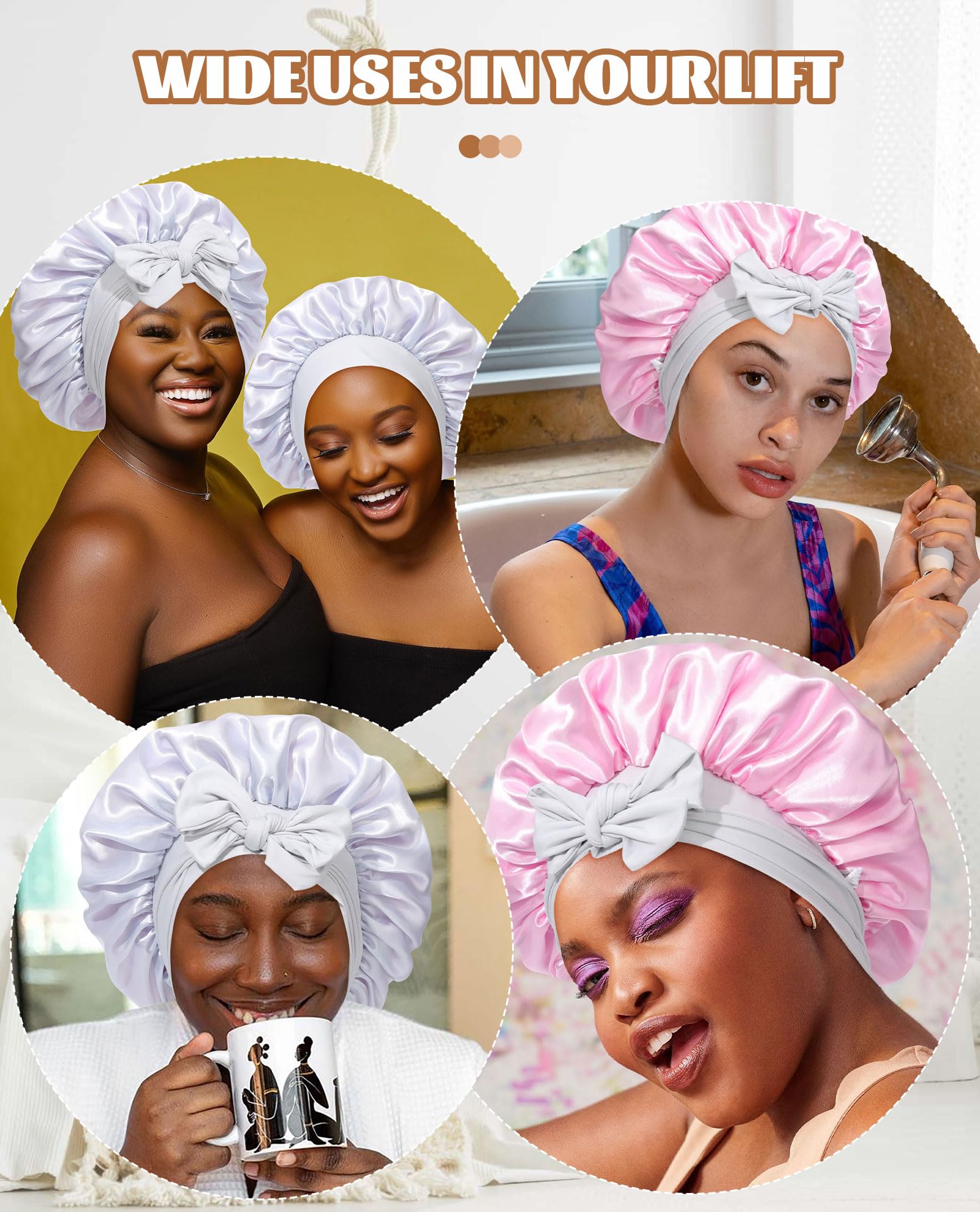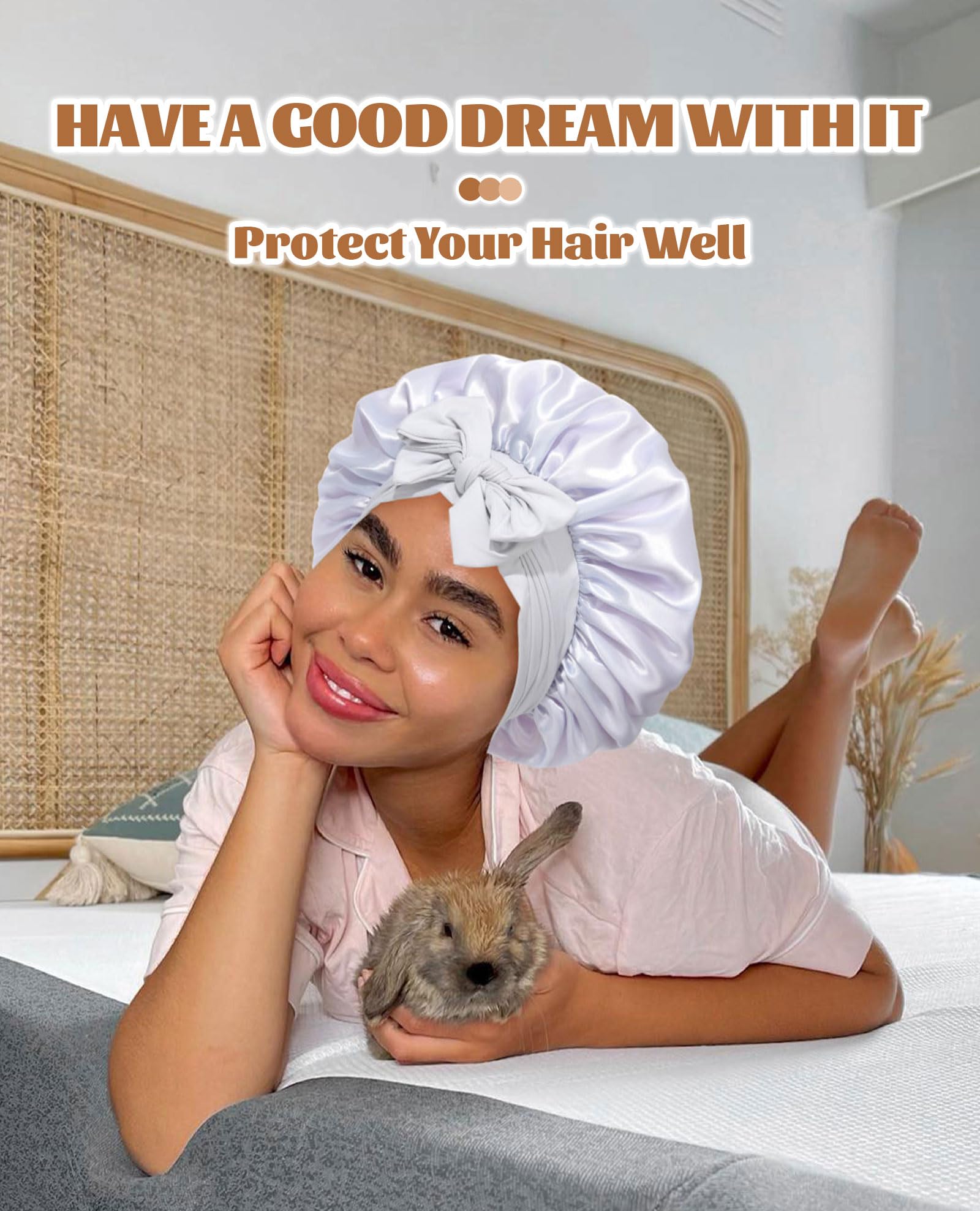 Satin Bonnet for Sleeping Versatile:Satin hair bonnet is not only suitable for sleeping, you can also use it to wash your face, bathe, cook, do SPA, tie your hair or clean your face while doing makeup, even do housework, do yoga and so on