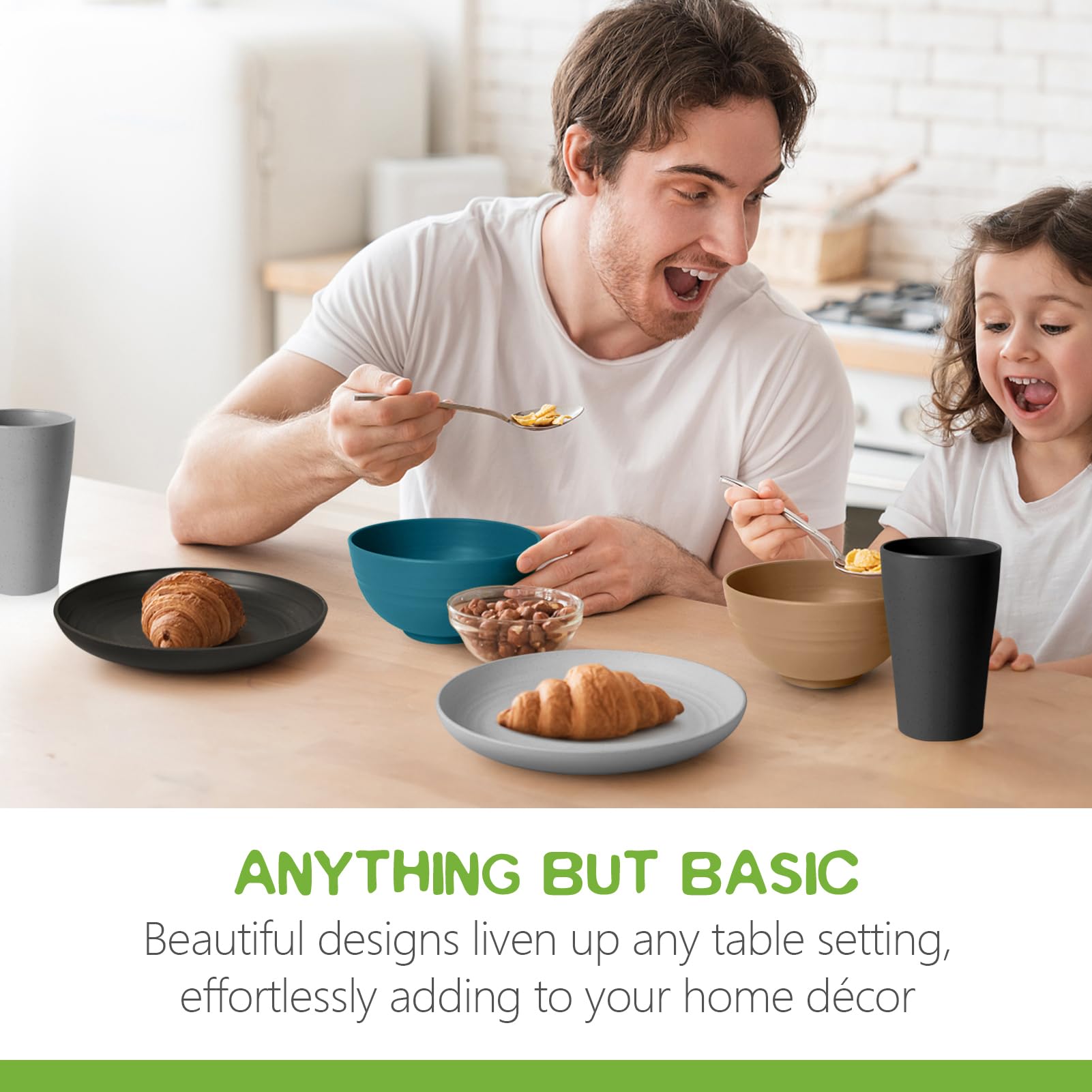 PACKAGE INCLUDE: This wheat straw dinnerware sets include 32 pieces in total. Easy to match your existing flatware.