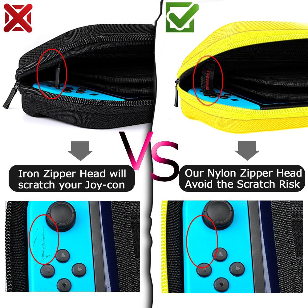 【Nylon Zipper Head:】Our Nintendo Switch 2 Case has Nylon Zipper Head and soft mesh netting. No scratches to the screen or Joy-Cons. The compartments with smooth zipper on the pocket, small items doesn't fall out of the storage area guarded by the netting.