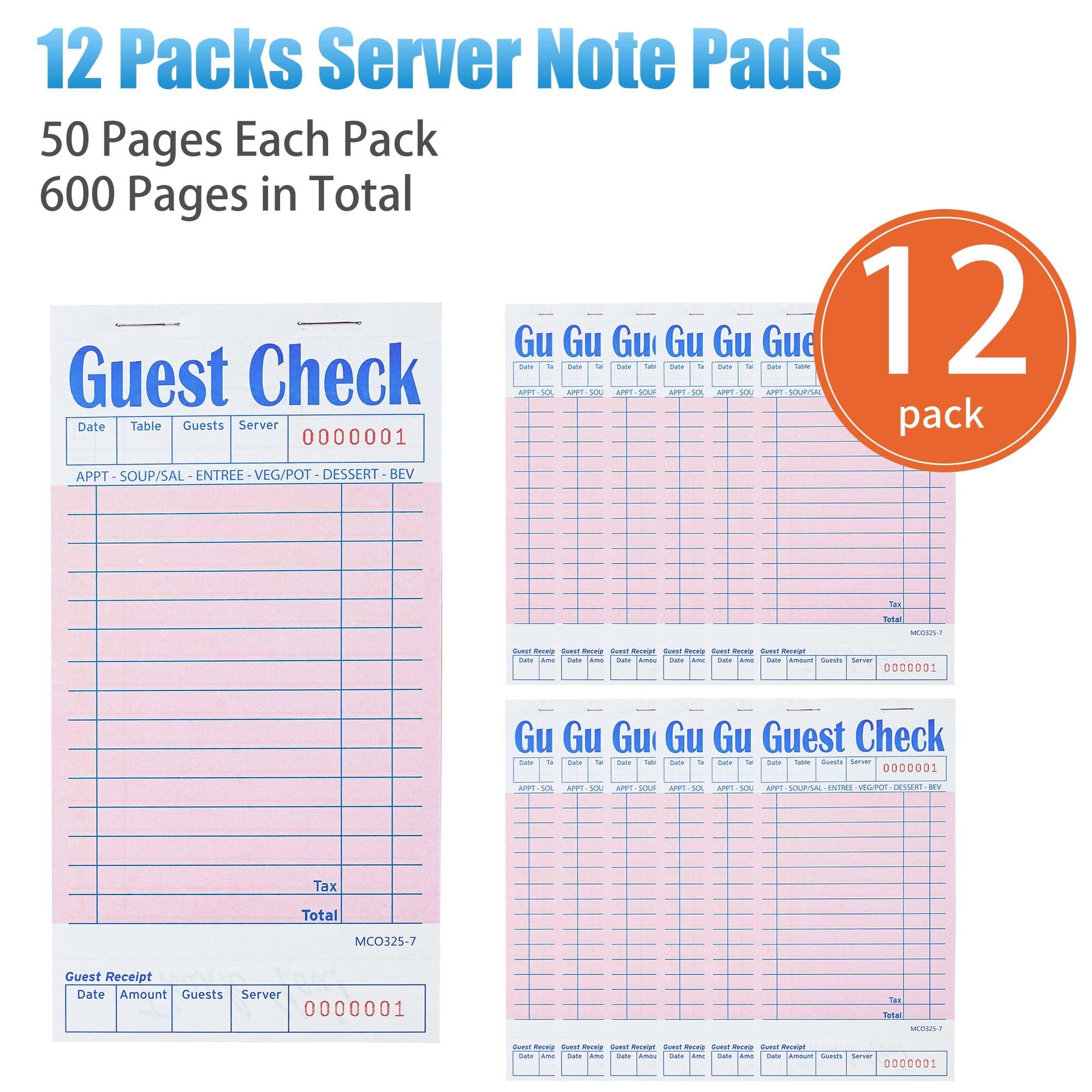 Standard size: 12 pink server note pads, Each Book Comes with 50 bound order slips - that's 600 ticket sheets total! Check Pads Size 6.75 x 3.5 inch.
