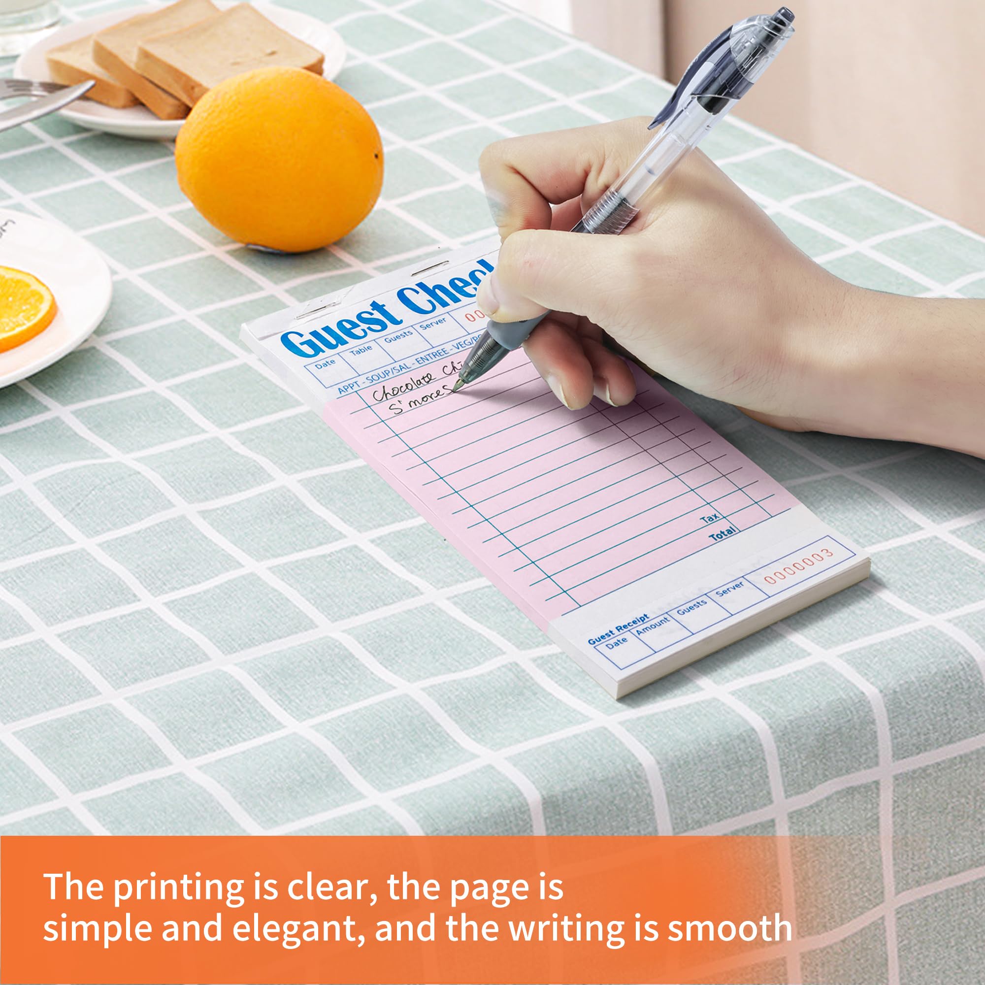 Convenient Work: These guest check books for servers have a tear-free dotted line that is easy to rip off. You can give as a customer copy or keep for record keeping. We've provided extra rows on the back for additional note taking.Perfect For Restaurants, Lounges, Hotels, Cafes, And Waiters To Use.