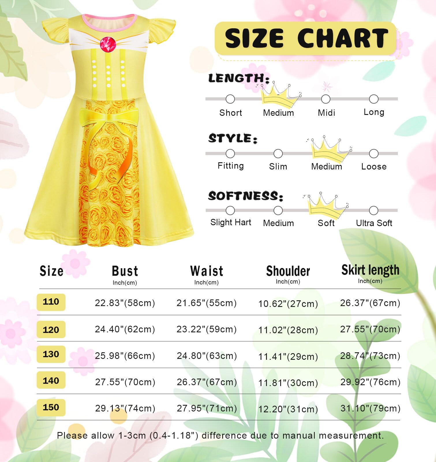 Size chart: These toddler nightgowns are fits for 1-10 years kids,2t,3t,4t,5t,6t,7-8 Years,9-10 Years.please check the size chart before order according. Both hand and gently machine washable, air dry.