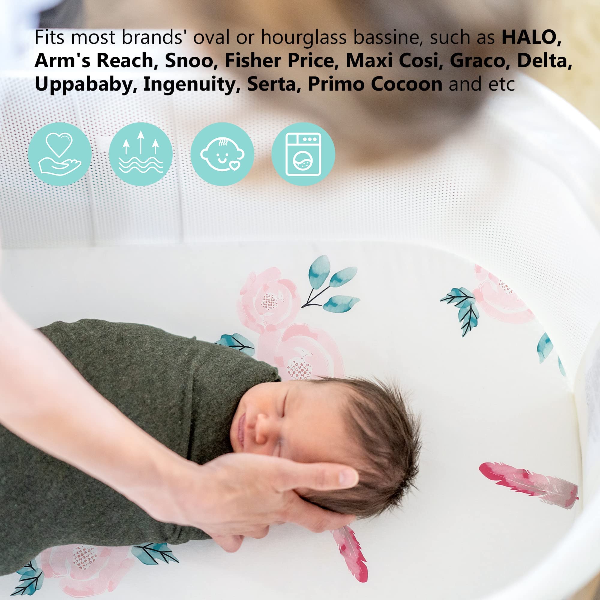 Classic Universal Size: This Bassinet Mattress Sheets have achieve a balance between elasticity and tightness. Stretches and fits oval, round, rectangular, hourglass shaped mattress up to 2.5”. No risk of mattress binding or damage.