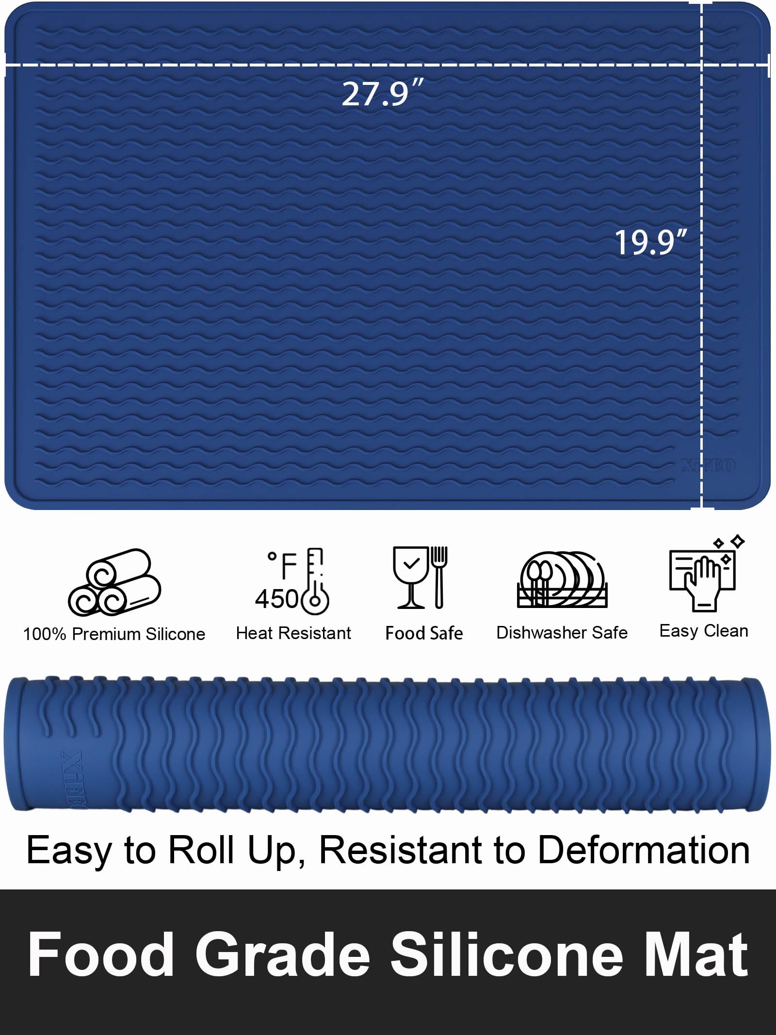 [Silicone Trivet Mat] Elevated wave patterns ensure efficient heat dissipation, while our silicone mat withstands temperatures up to 450°F, safeguarding your surfaces from heat damage. Caution: Do not cover induction cookers exceeding 450°F or place over active cookers.