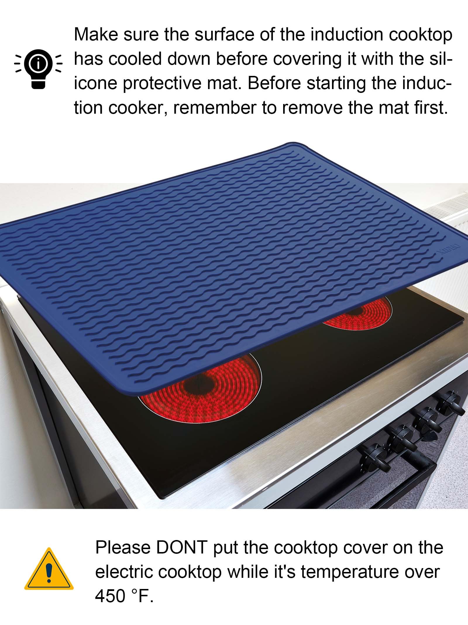 [Electric Stove Top Cover] Our 27.9" x 19.9" inches silicone glass stove top cover protector for electric stove is perfect for protecting your electric stove top, kitchen countertop, electric range top, table or washer dryer top from scratches, spills, stains, scrapes and dirt. Designed to fit most glass-topped induction cookers, it instantly creates extra counter space for your culinary adventures.