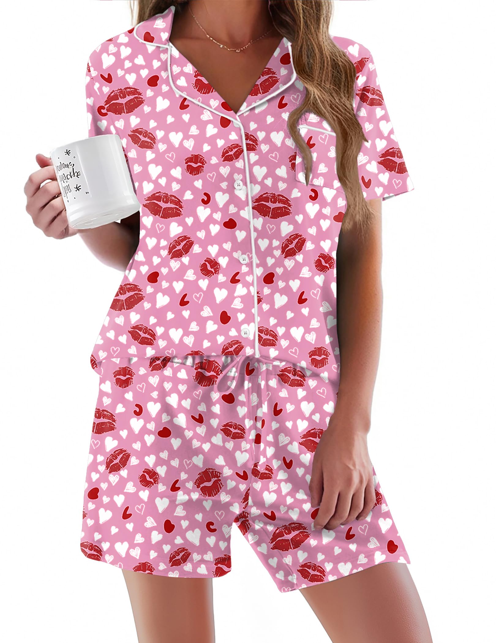 HUMANIZATION DESIGN: Features a hip-length button-down top with notch collar and chest pocket. Shorts include a chiffon drawstring elastic waist for maximum comfort.