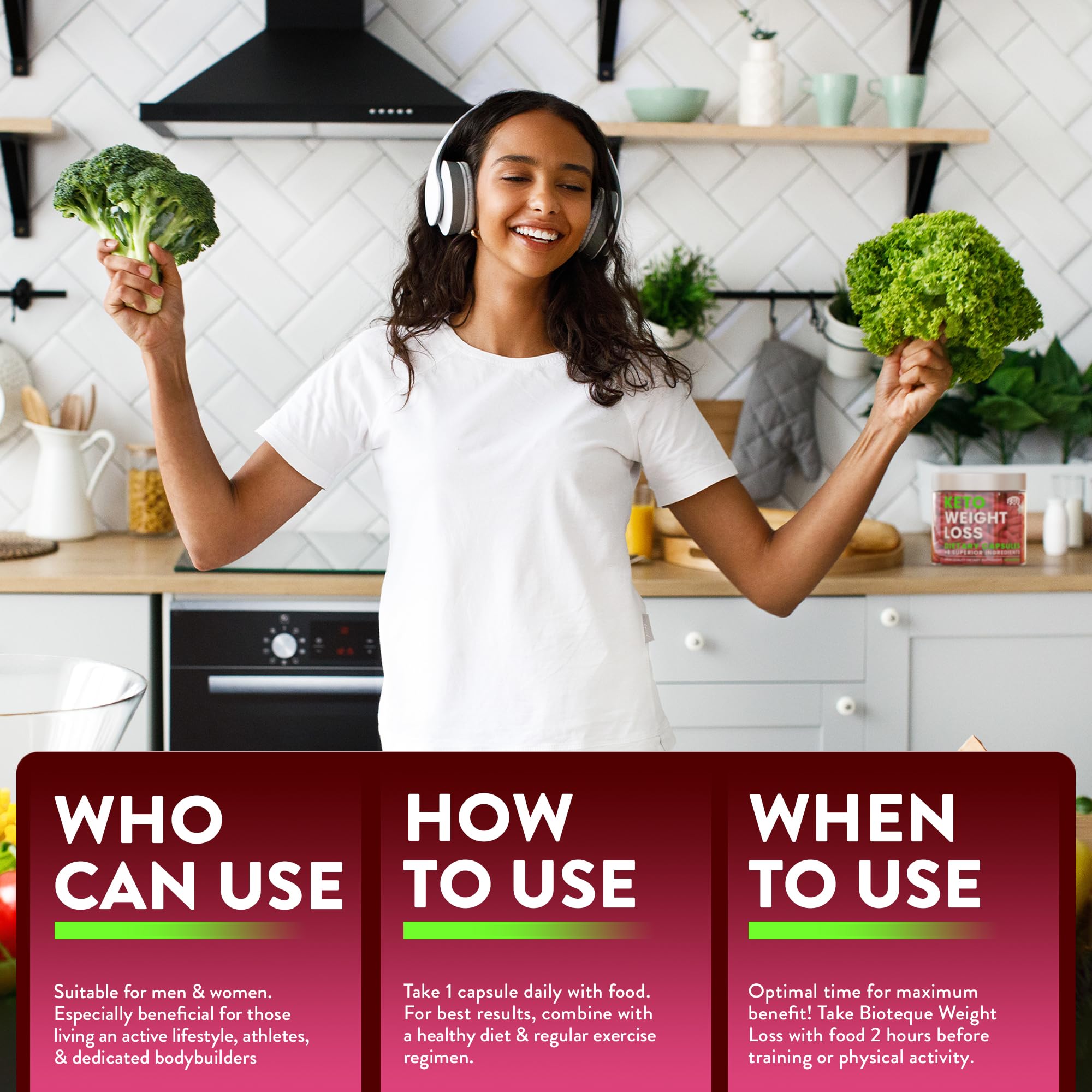 Rapid Weight Loss and Fat Burning Formula – Bioteque Lab Keto Weight Loss is a powerful supplement that helps you achieve a ketogenic state by increasing ketone levels in your body. This fat-burning formula (quemador de grasa) acts as an effective appetite suppressant, supporting weight management and promoting increased weightloss. With this product, you can lose weight fast and target stubborn belly fat, making it one of the best options for those looking to reach their weight loss goals.