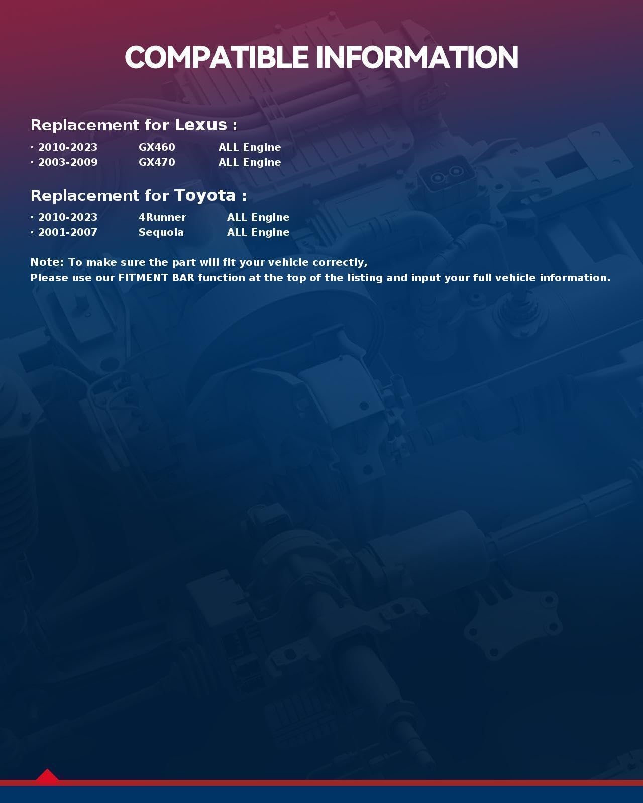 [Vehicle Fitment]: Compatible with Toyota 4Runner 2010-2023, Lexus GX460 2010-2023, Toyota Sequoia 2001-2007, Lexus GX470 2003-2009 --- Rear Left and Right, Driver and Passenger Side