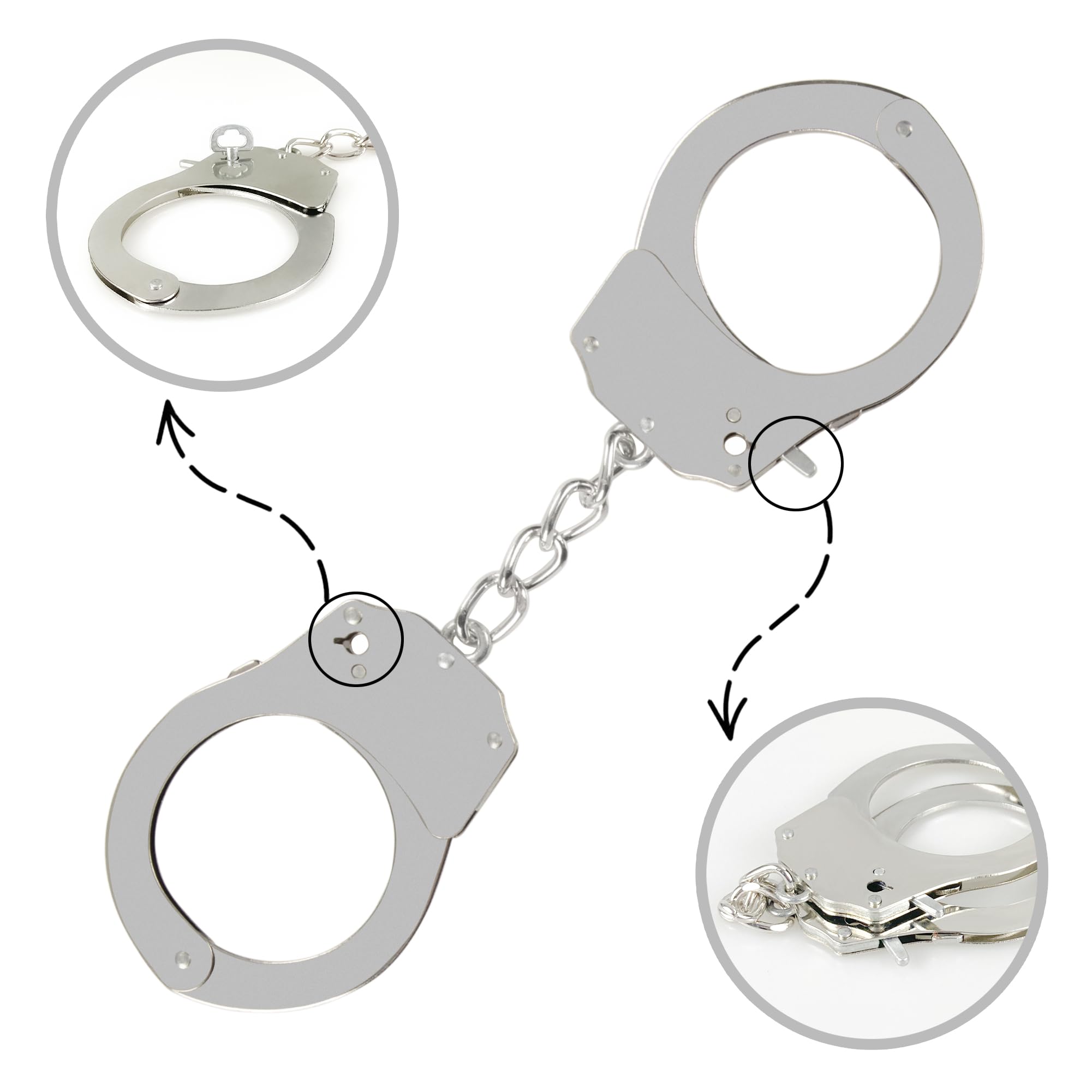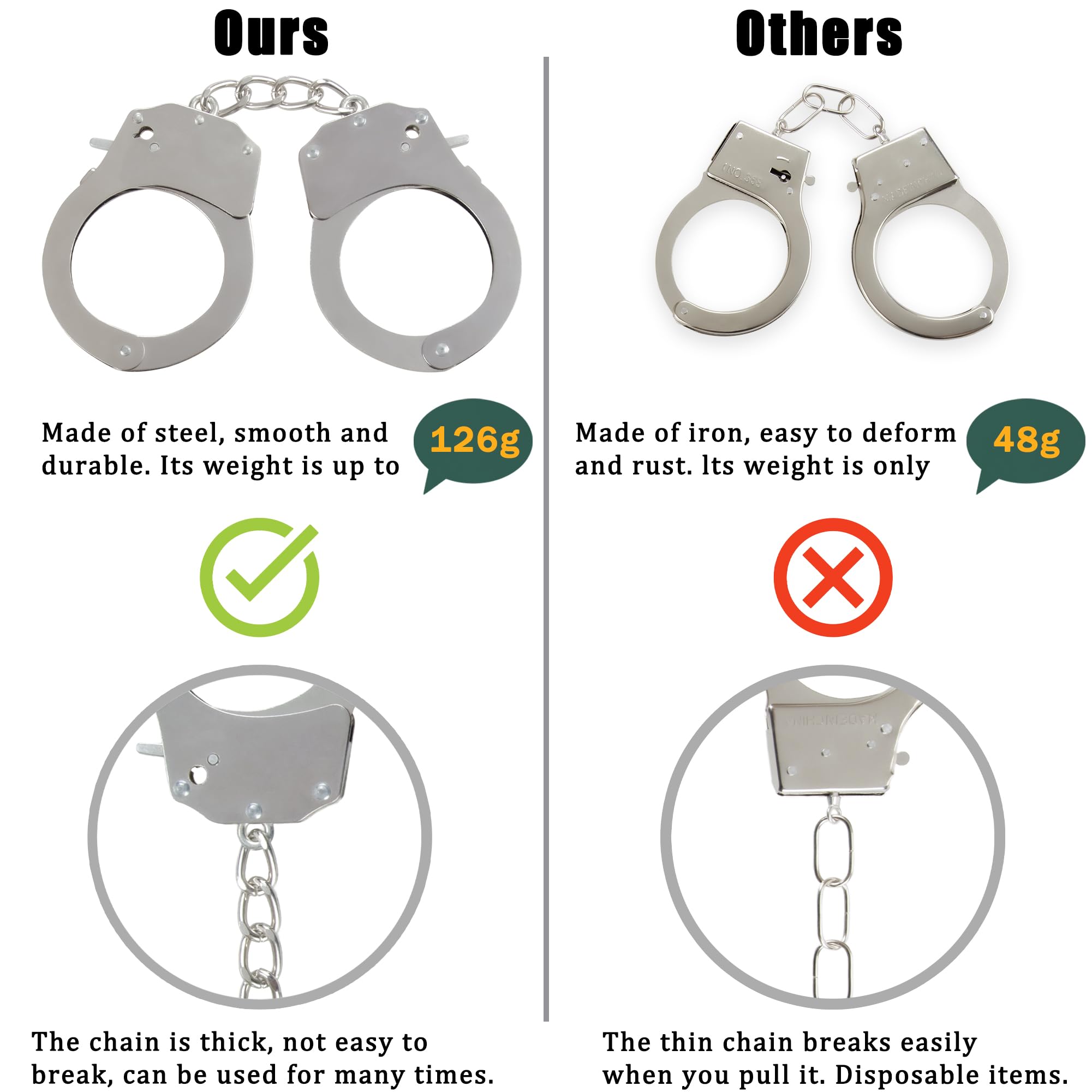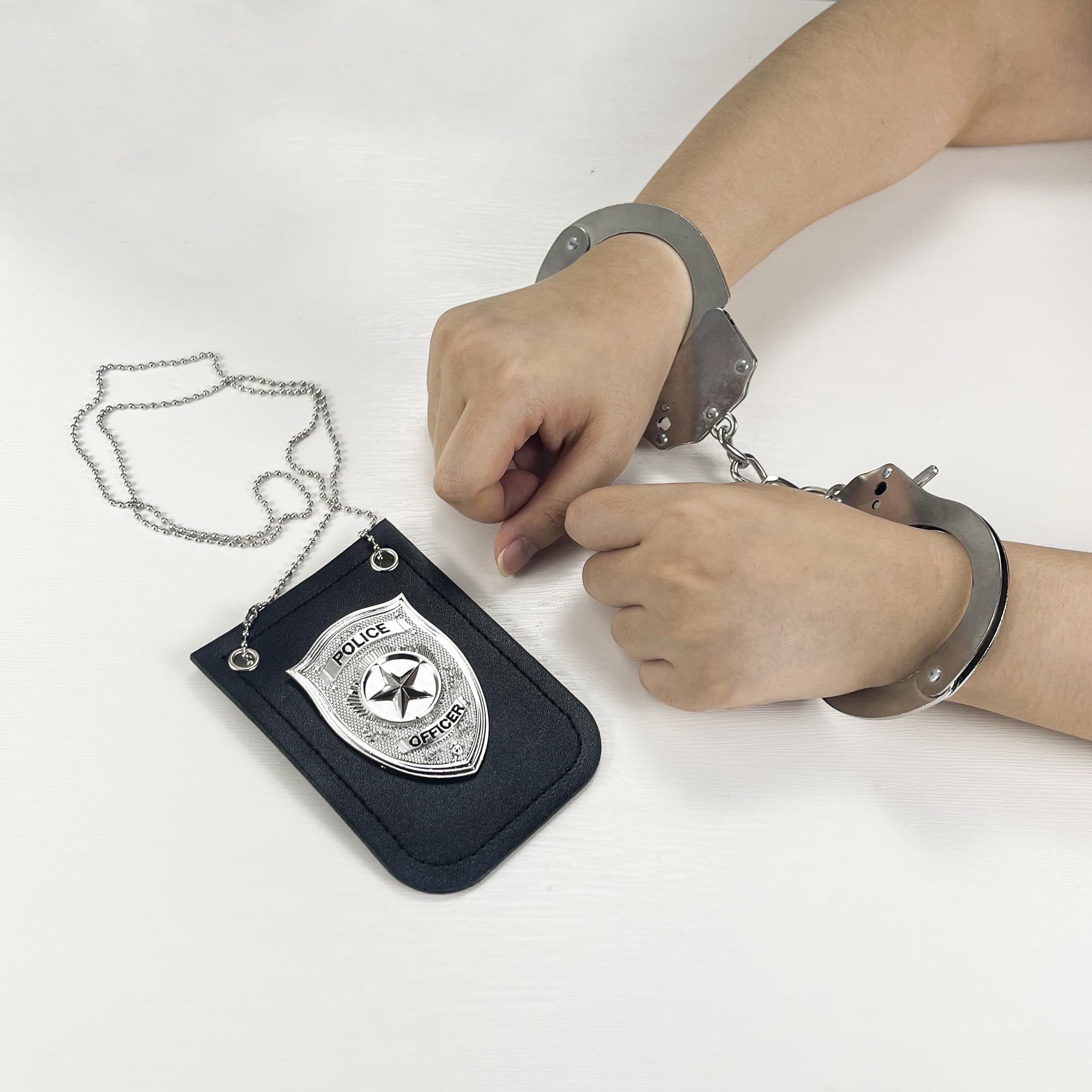 EXCEPTIONAL QUALITY: The toy handcuffs are made of superior steel and the police badge with chain (removable) is made of premium leather with a premium metal badge (removable) that you can wear around your neck or clip in your pocket