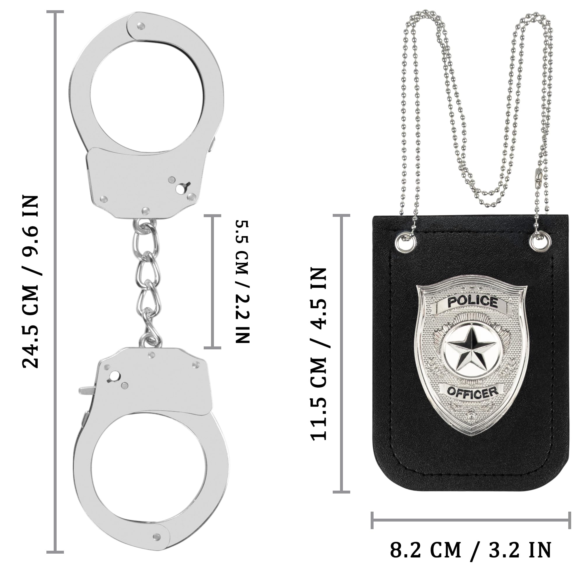 Description Police Badge and Toy Handcuffs Set for Police Pretend Play, Police Party Favors, Halloween Costumes Accessories
