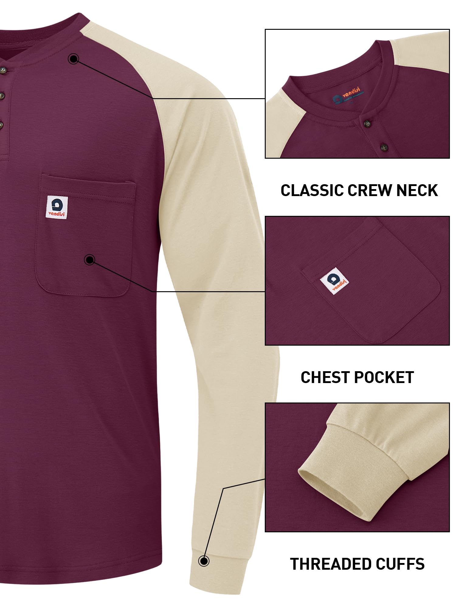 【Humanized Design】The Vandisi CAT 2 FR shirt features high-density seams and thermal transfer labels neckline for a true comfort experience. Henry collar and rib knit cuffs, enhanced fabric durability and stretch provide ease of movement and longer-lasting wear. Raglan sleeves significantly improve the fit of the shirt, 1 left chest pocket for great convenience!