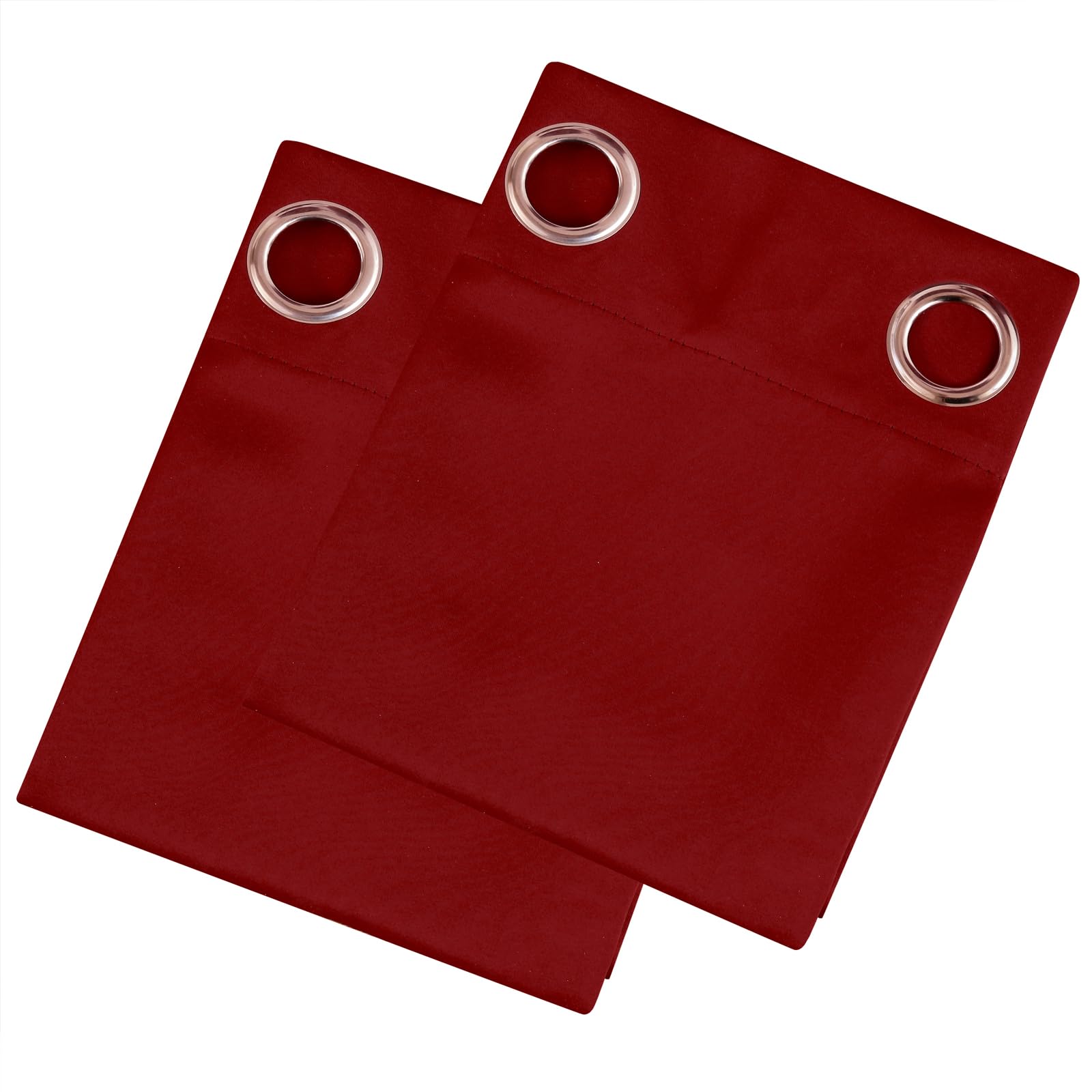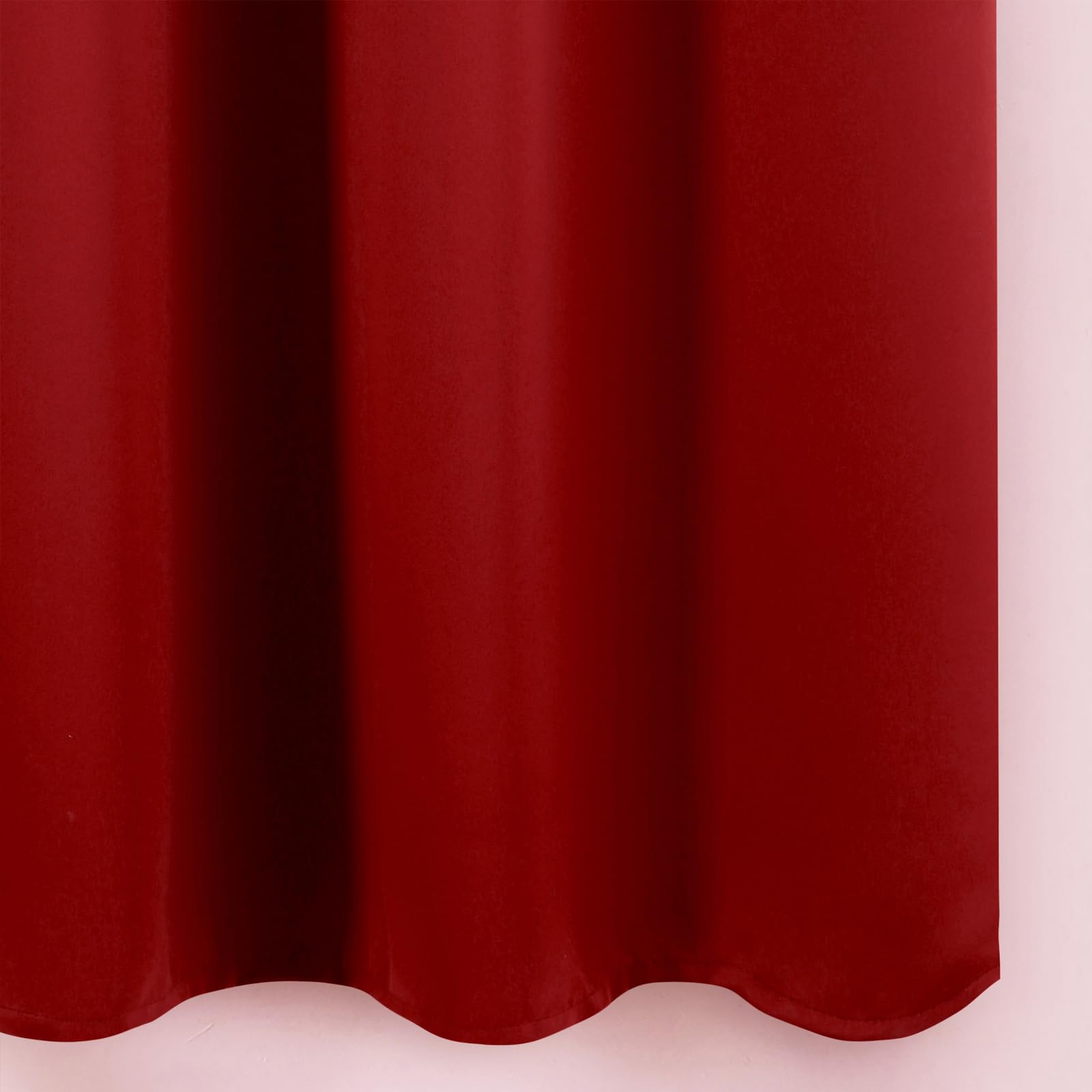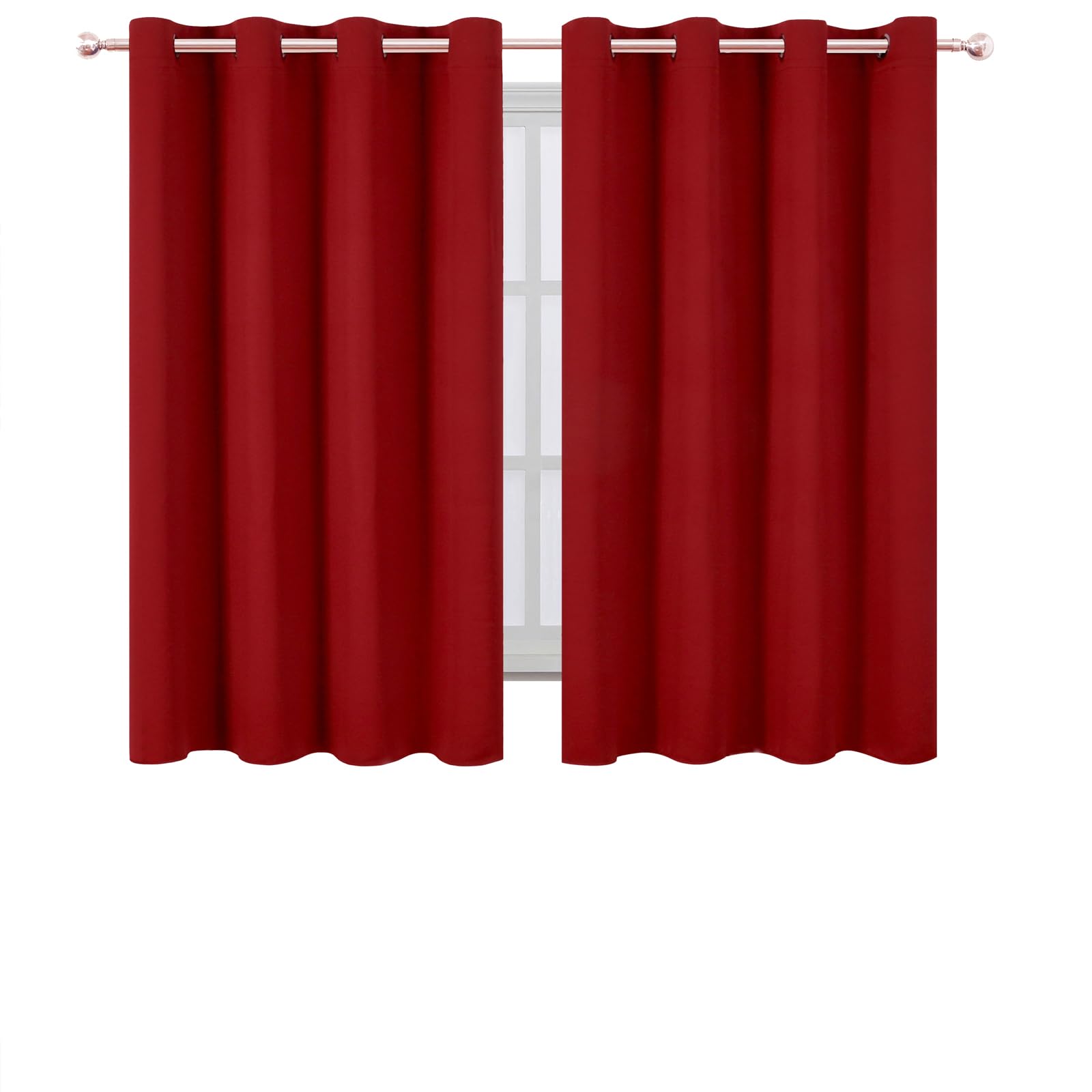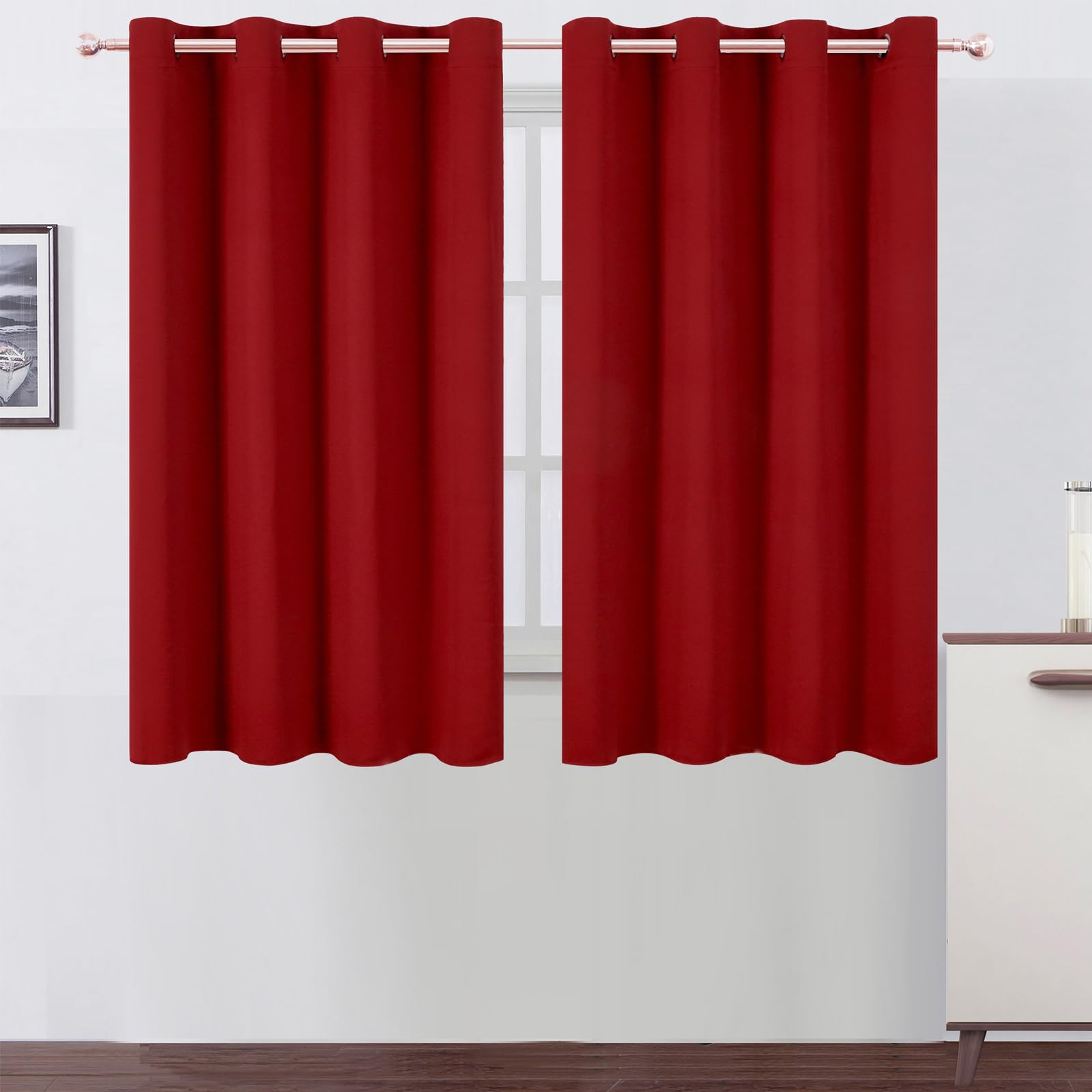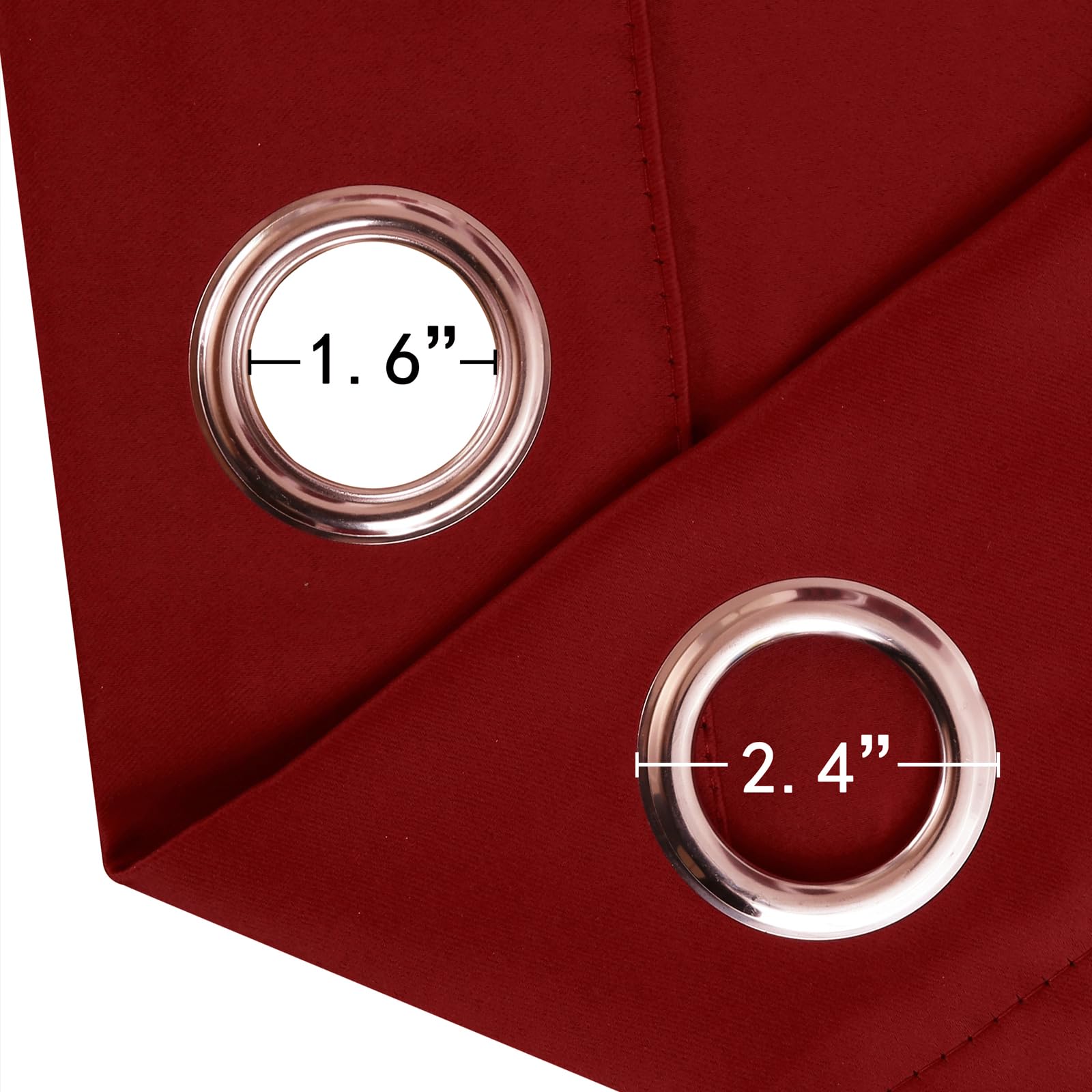 Package Includes: 2 red curtain panels, each blackout curtain measures 66 inch wide and 54 inch length constructed with 8 silver grommets measuring 1.6 inches inner diameter