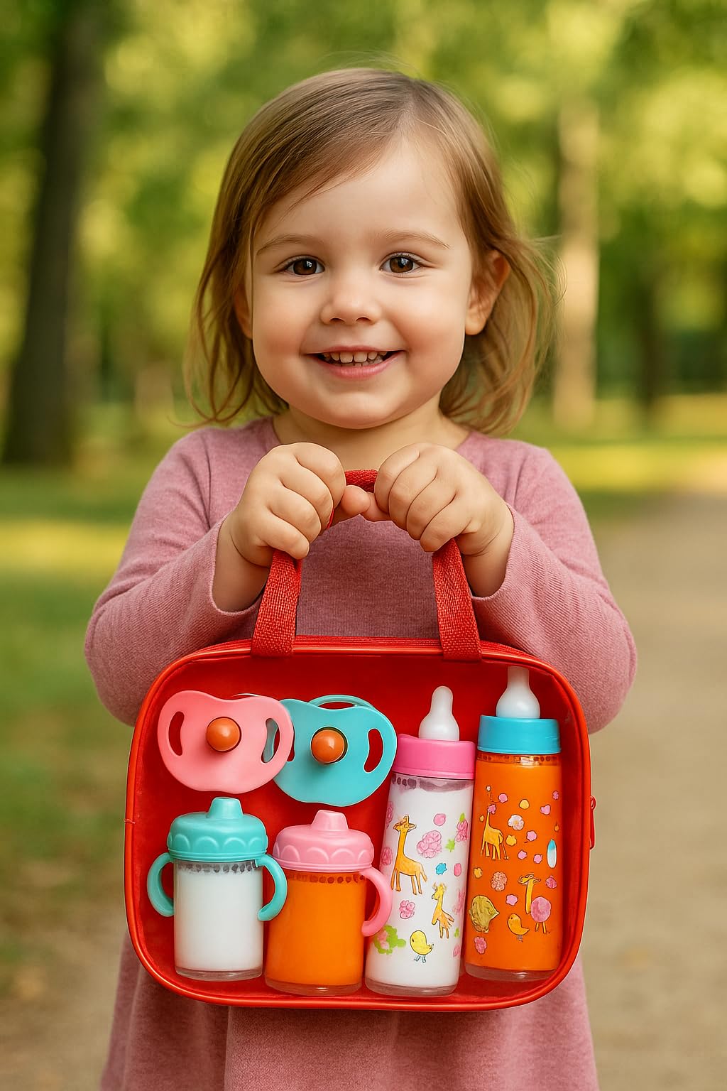 Ideal Pretend Play Gift For Little Girls: If Youβre Looking For The Perfect Addition To Improve Your Childβs Creative Hours And Enhance Cognitive Skills, This Baby Doll Feeding Set Is Built To Compliment Pretend Play For Little Girls. Your Little Toddler Can Carry The Baby Care Bag That Can Be Unzipped Freely In Her Baby Doll Stroller Which Includes Toy Bottles For Baby Dolls And A Toy Pacifier.