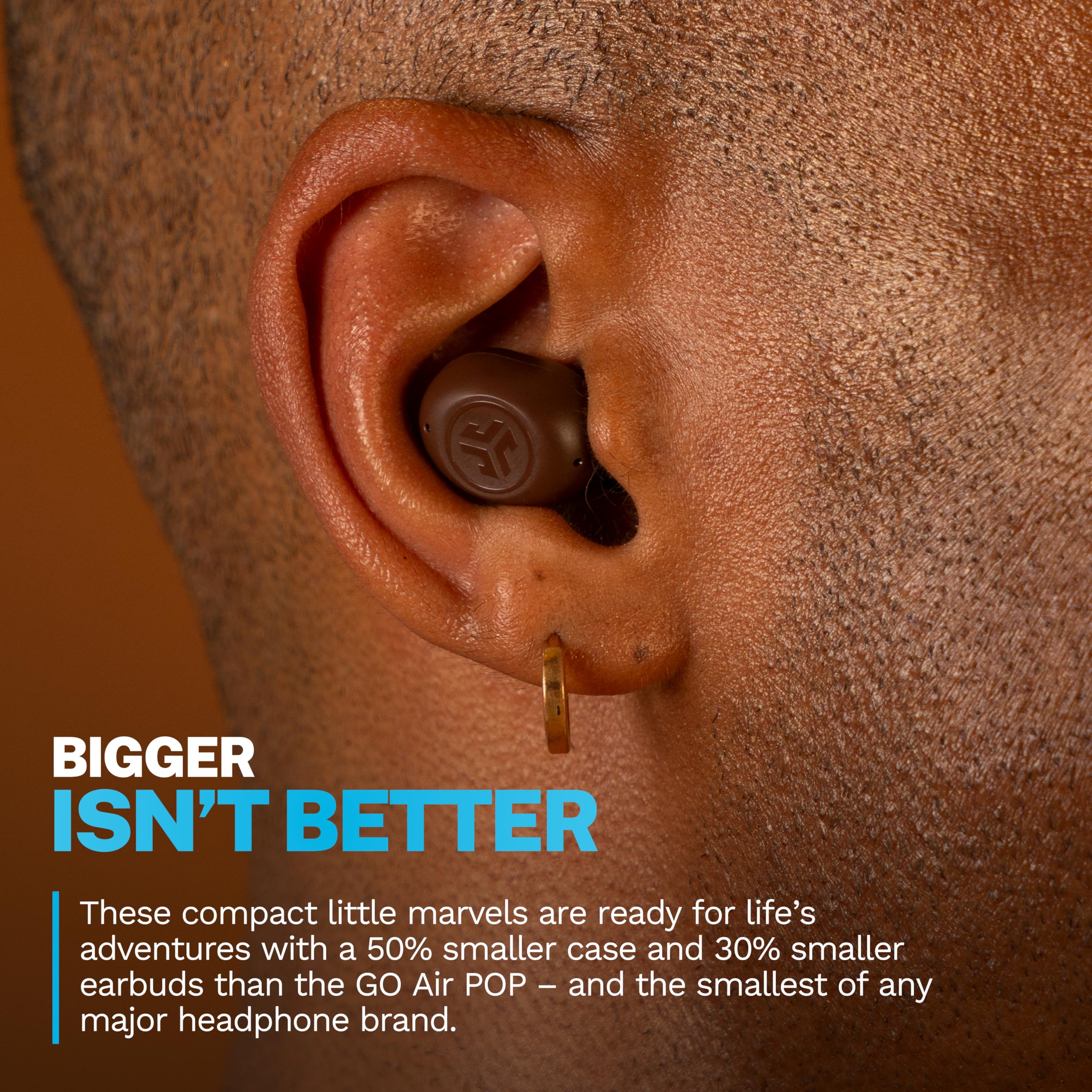 🤏 BIGGER ISN’T BETTER / PLENTY OF PLAYTIME: These compact little marvels are ready for life’s adventures with a 50% smaller case and 30% smaller earbuds than the GO Air POP – and the smallest of any major headphone brand . Enjoy 5 . 5 hours of playtime in each earbud or 20 total hours with the charging case for an all-day listening experience where size doesn't compromise performance.