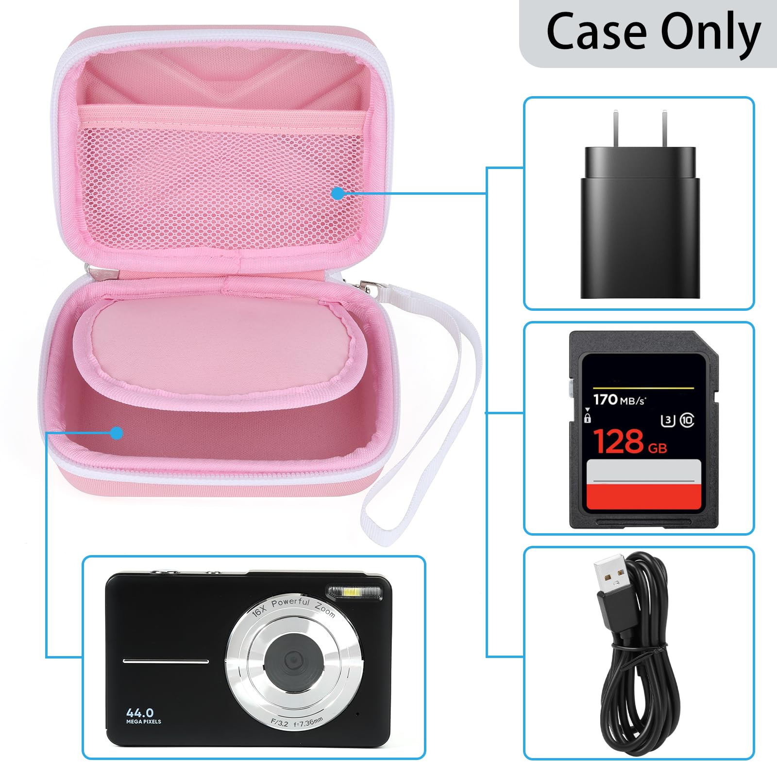 Digital Camera Case for AbergBest 21 Mega Pixels 2.7" LCD Rechargeable HD/Kodak Pixpro/Canon PowerShot ELPH 180/190/Sony DSCW800/DSCW830 Cameras, Travel Carrying Protective Case for Camera - Pink