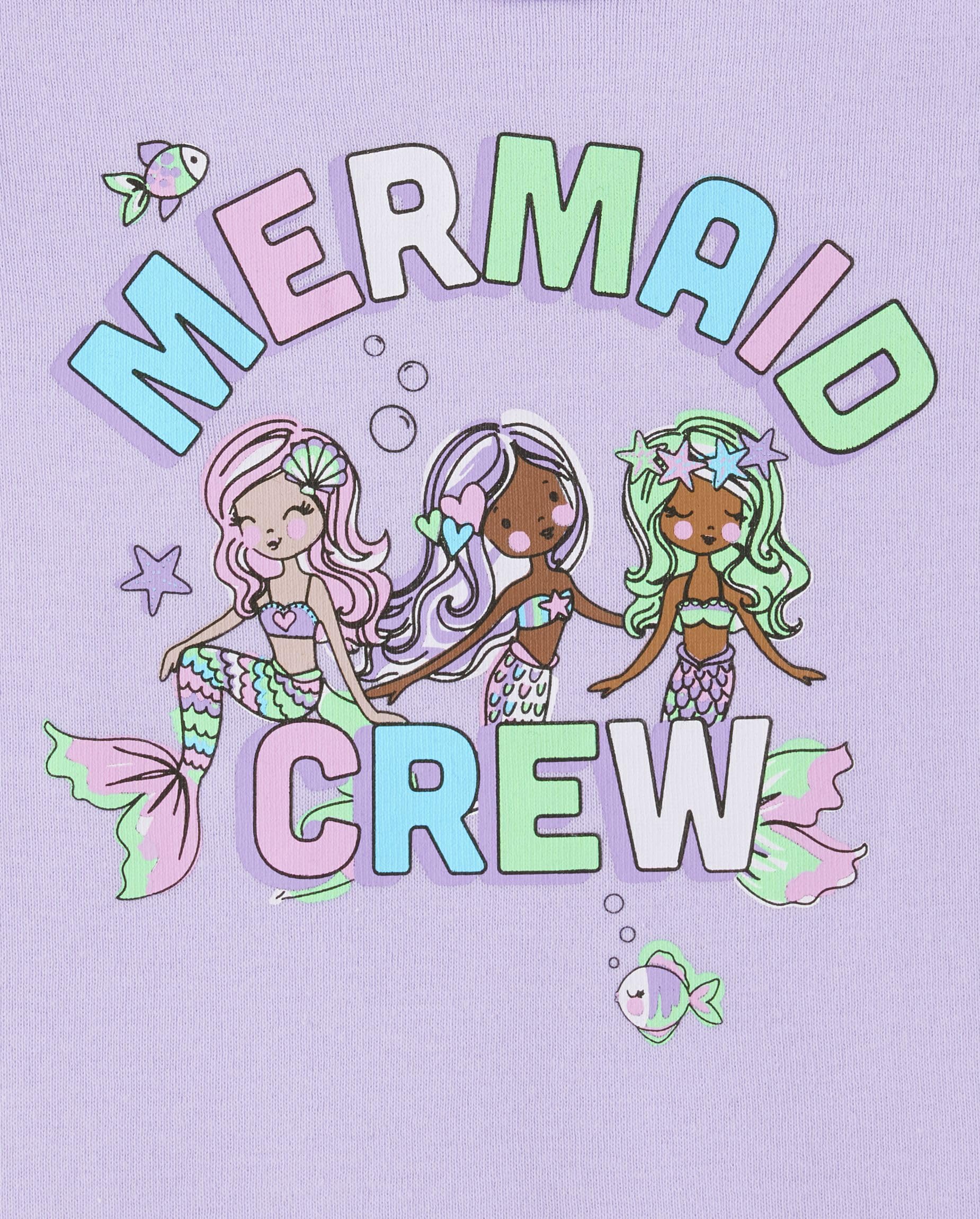 PAJAMA TOP — Features short sleeves, contrast rib-knit crew neck and 'Mermaid Crew' with mermaids graphic design at front