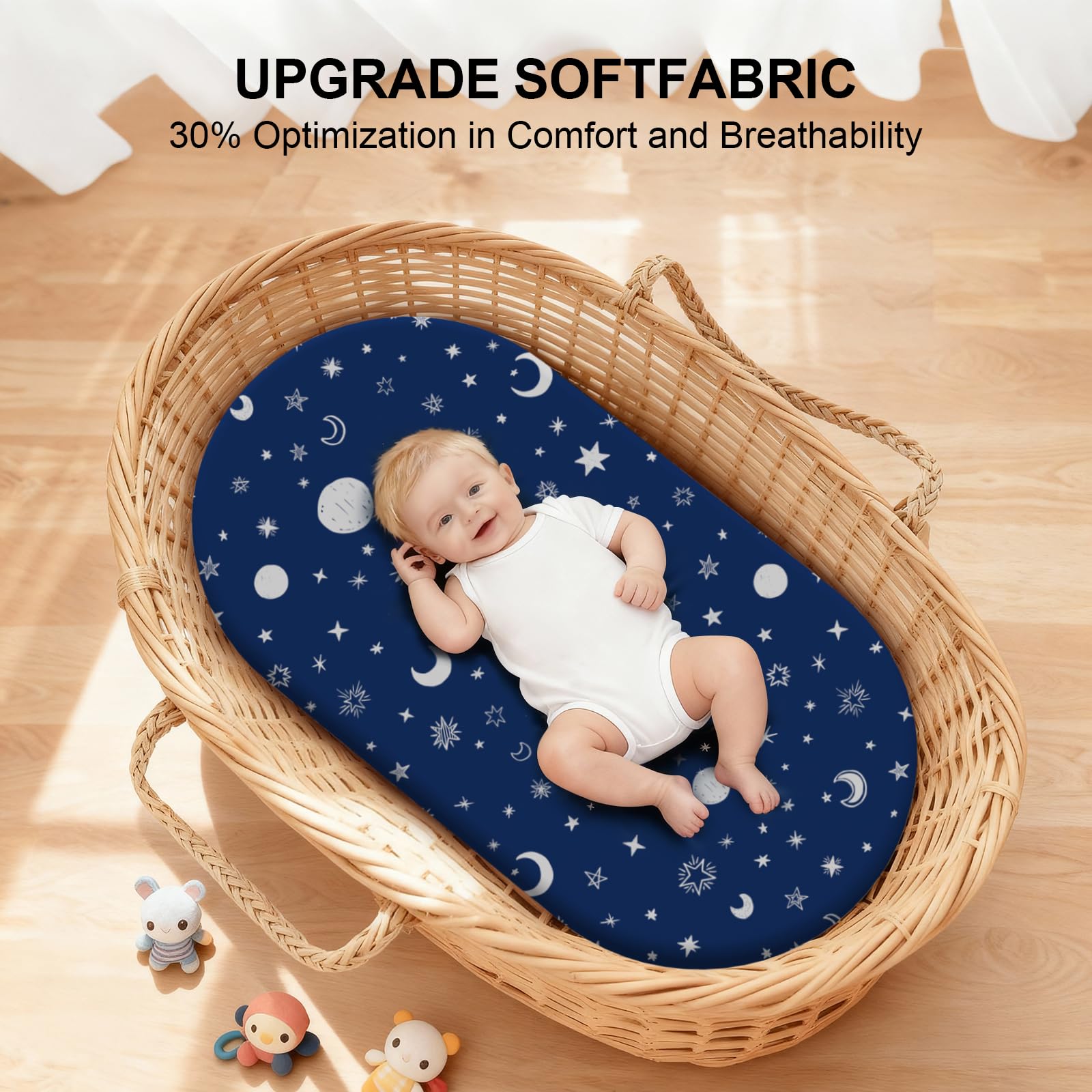 High-quality & Safe: Our bassinet fitted sheet is made from ultra-soft microfiber woven into a soft knit fabric. It keeps your baby safe while providing a breathable, soft surface perfect for sensitive skin, ensuring a soft, smooth, and comfortable feel while sleeping or playing in the bassinet.