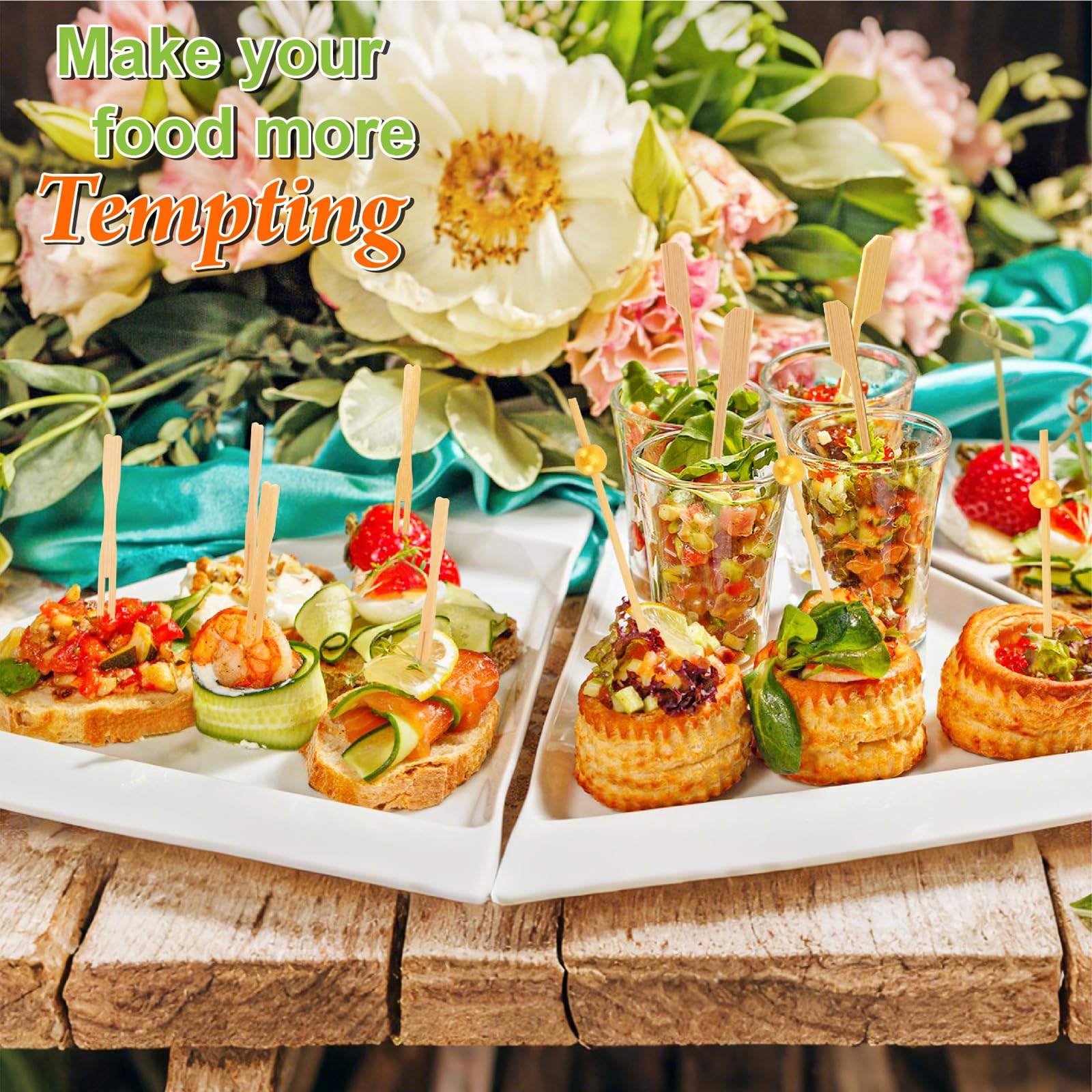 ENVIRONMENTALLY FRIENDLY & EASY TO DISPOSE: Our party toothpicks are made from high-quality natural bamboo. They have a smooth surface without splinters, are environmentally friendly and biodegradable, and are easy to dispose of after use. Our carefully crafted food sticks are more environmentally friendly than plastic toothpicks, and you can do your part to reduce global plastic waste.