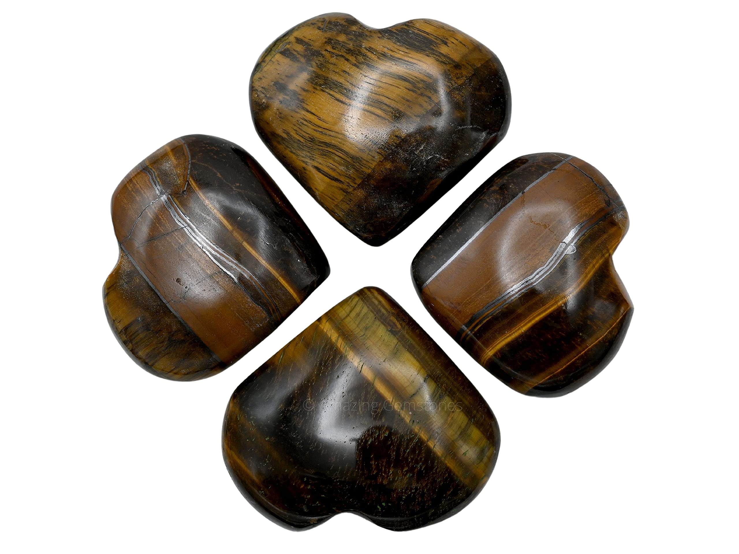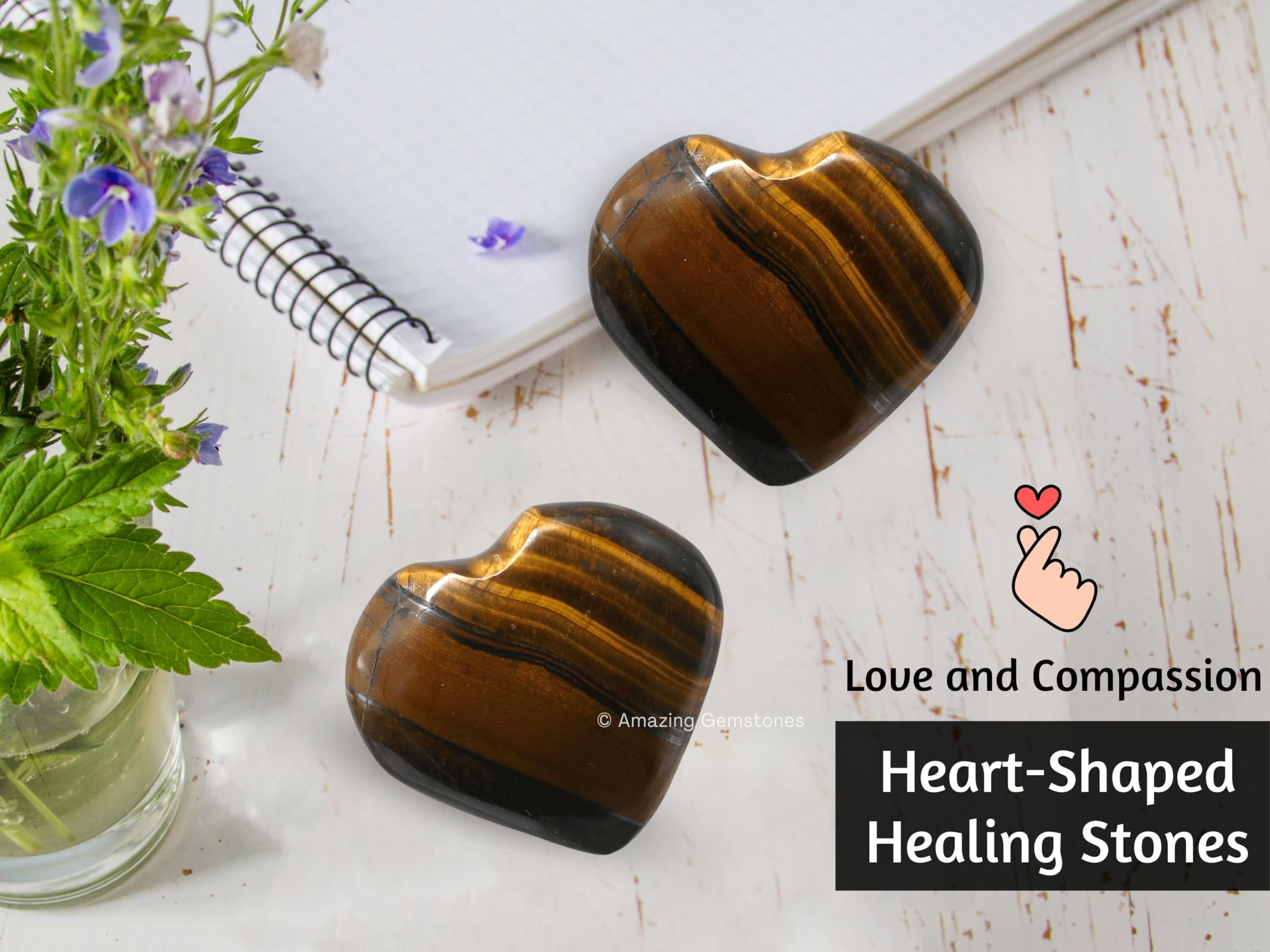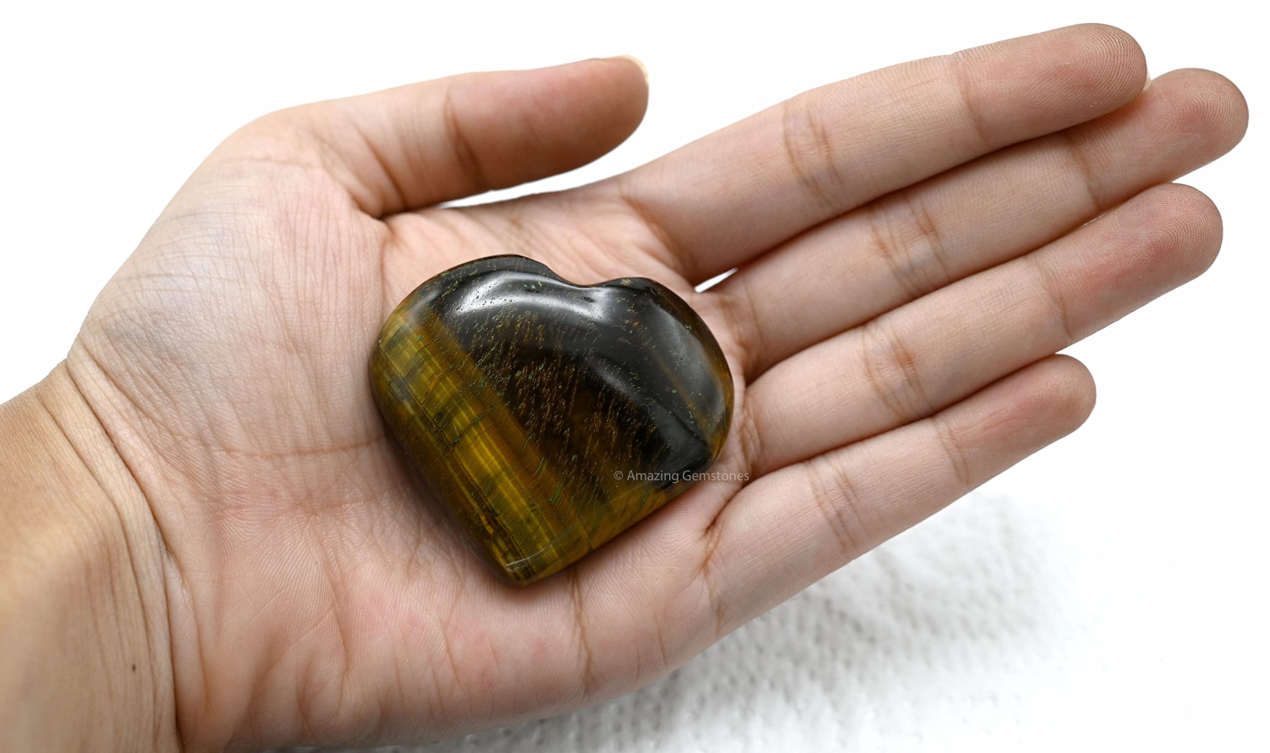 Tiger's Eye Crystal Heart Palm Worry Stones are polished heart shaped stones that can be used for Back, Neck, Face and Feet Massage therapy, Chakra Balancing, Reiki Healing, Crystal Grid Meditation and many other esoteric healing practices.
