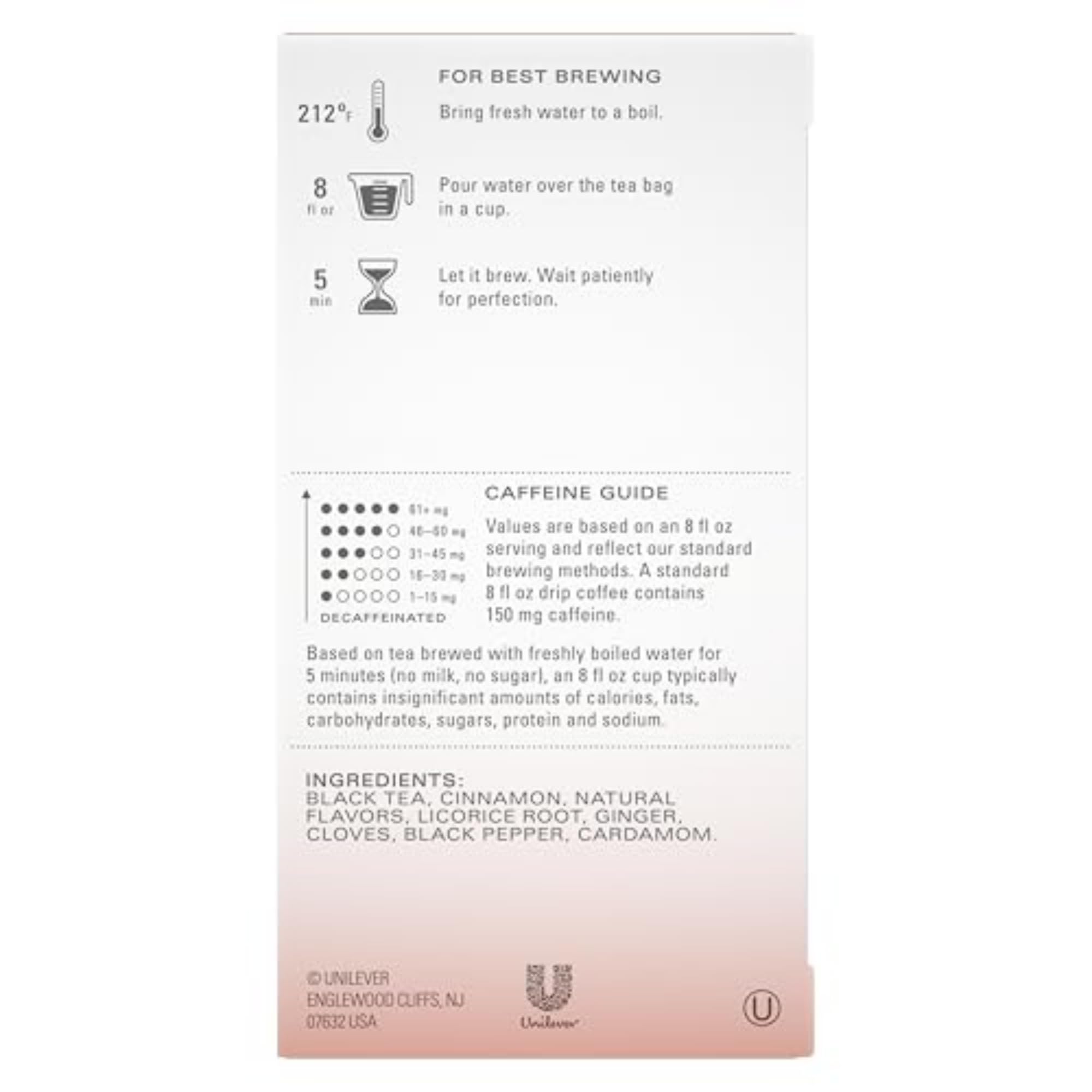 TAZO PUMPKIN SPICE CHAI: These chai tea bags have a warm, robust blend of black tea, classic chai, and pumpkin pie spices with natural flavors like cinnamon, licorice root, ginger, cloves, black pepper, and cardamom