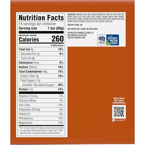 PEANUT BUTTER PERFECTION: Includes one 15-pack box of Crunchy Peanut Butter energy bars made with crunchy peanuts and organic peanut butter for a taste you’ll go nutty for (packaging may vary)
