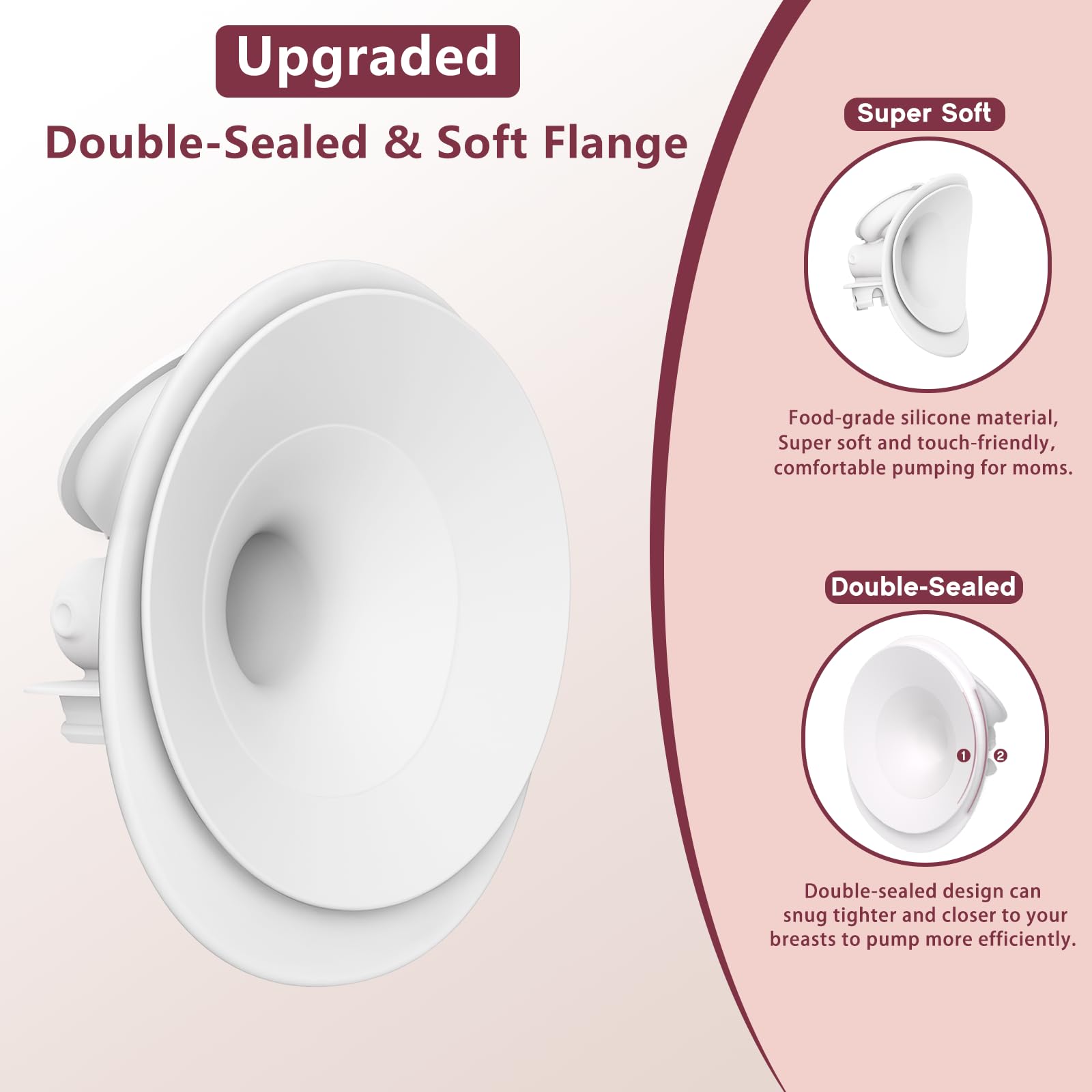 【Double-Sealed Flange, More Efficient】: M9 Upgraded Double Sealed Flange design can snug tighter and closer to your breasts to pump more efficiently. enhanced strong suction power and reliable sealing, Retaining a strong suction to make pumping easier, faster, and more comfortable.