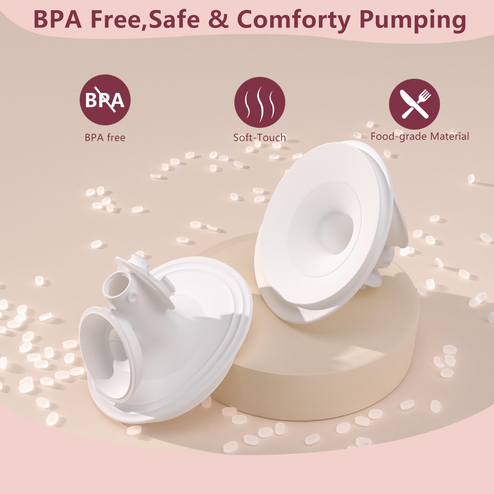 【105-degree Wider Opening Angel 】:The breast shield designing with 105 degree wide angle opening , more suitable for mothers with large breasts or flatter contour breasts. Larger cup size for more covered area of breasts during pumping and more comfortable.