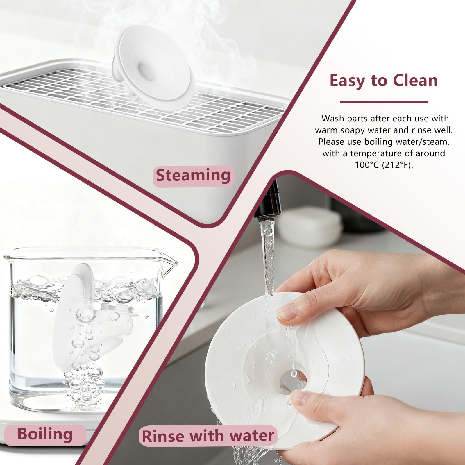 【Easy To Use & Clean】:Wash parts after each use with warm soapy water and rinse well. Please use boiling water/steam, with a temperature of around 100°C (212°F).Dishwasher safe and compatible with fridge and freezer use. Notice: If you notice that your pump seems to have lost suction, you need to change pump parts, Diaphragm and duck valves need to be replaced every 3 months.