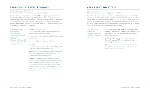 The deliciously nutritious make-ahead baby food cookbook for a healthy start and beyond Healthy, homemade baby food is the best way to ensure your little one is getting all of the nourishment they need―but every parent knows the stress of cooking dinner when your mind is on changing diapers. The Make-Ahead Baby Food Cookbook helps you plan ahead, showing you how quick and easy it can be to cook yummy, wholesome baby food safely and conveniently at home. This baby food cookbook gets you started with a primer on signs to look for when your little one is ready to get in the high chair and how to provide essential nutrients at each stage. You'll learn the ins and outs of batch cooking, freezing, and reheating, before diving in with an easy-to-navigate 4-week meal plan for each of the three stages of development. This baby food cookbook is also packed with dozens of hearty purees, chunky combinations, and fun finger foods, as well as bonus recipes perfect for your toddler and delicious for the whole family. The Make-Ahead Baby Food Cookbook includes: From bottle to bowl―Discover what tools you'll need, which order to introduce solid foods, how to detect food sensitivities, and how to raise a food-friendly eater. Set the stage―Prep for success with this baby food cookbook, using 4-week meal plans for each stage, including a reader-friendly planning chart, detailed shopping lists, foolproof step-by-step recipes, and more. Ready-to-go recipes―Please your baby's palate with dozens of yummy and nutrient-rich foods for every stage and beyond―including flavor combos, mix-ins, and time-saving tips. Make mealtime mess-free and stress-free with the Make-Ahead Baby Food Cookbook, an all-in-one meal map for every stage and age.