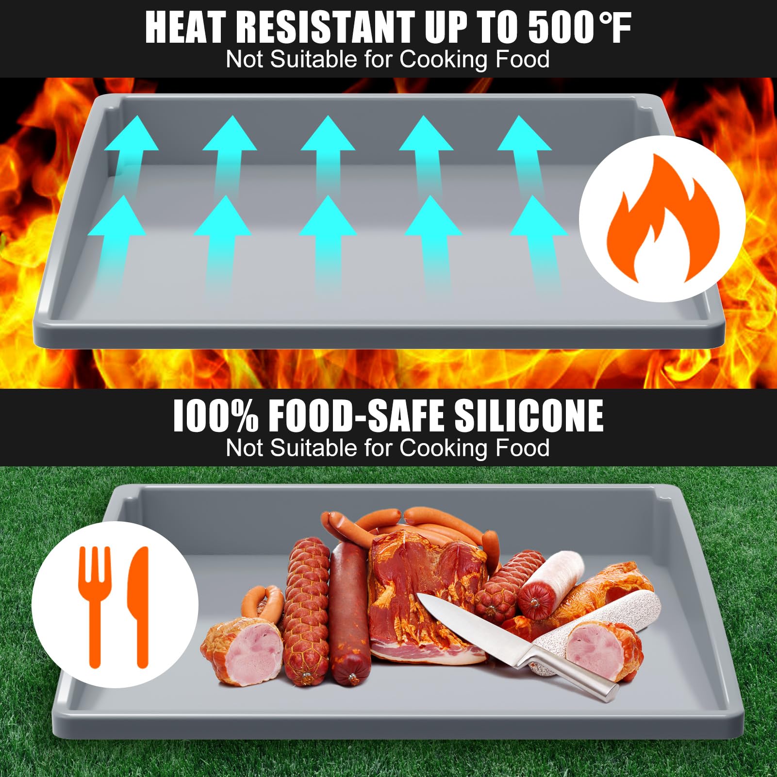 【FOOD GRADE SILICONE】: The griddle mat for blackstone grill is made of 100% high-quality food-grade silicone, thick, durable, soft, safe and reliable, you can use it with confidence, it will not heat or transfer heat, and can withstand up to 500℉.
