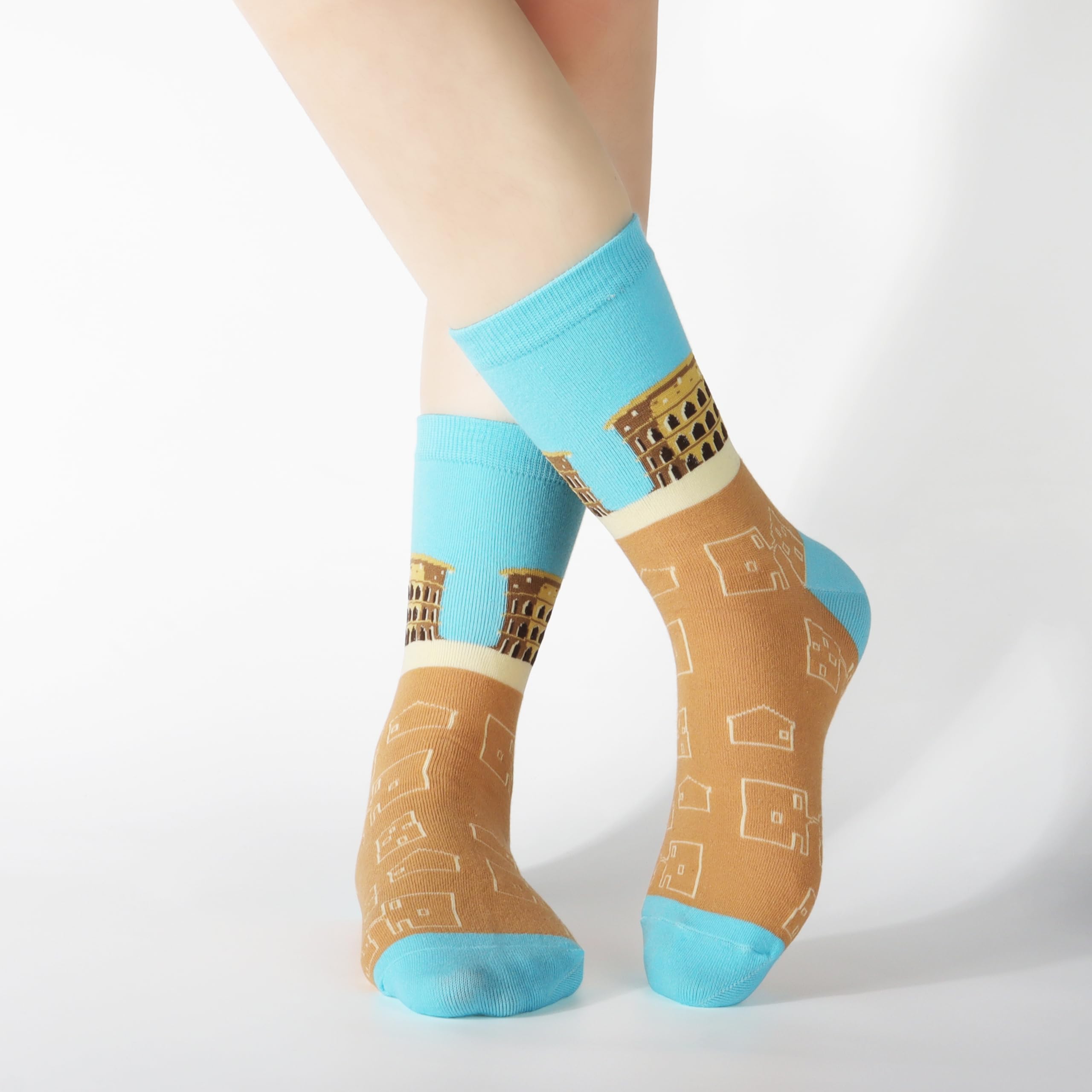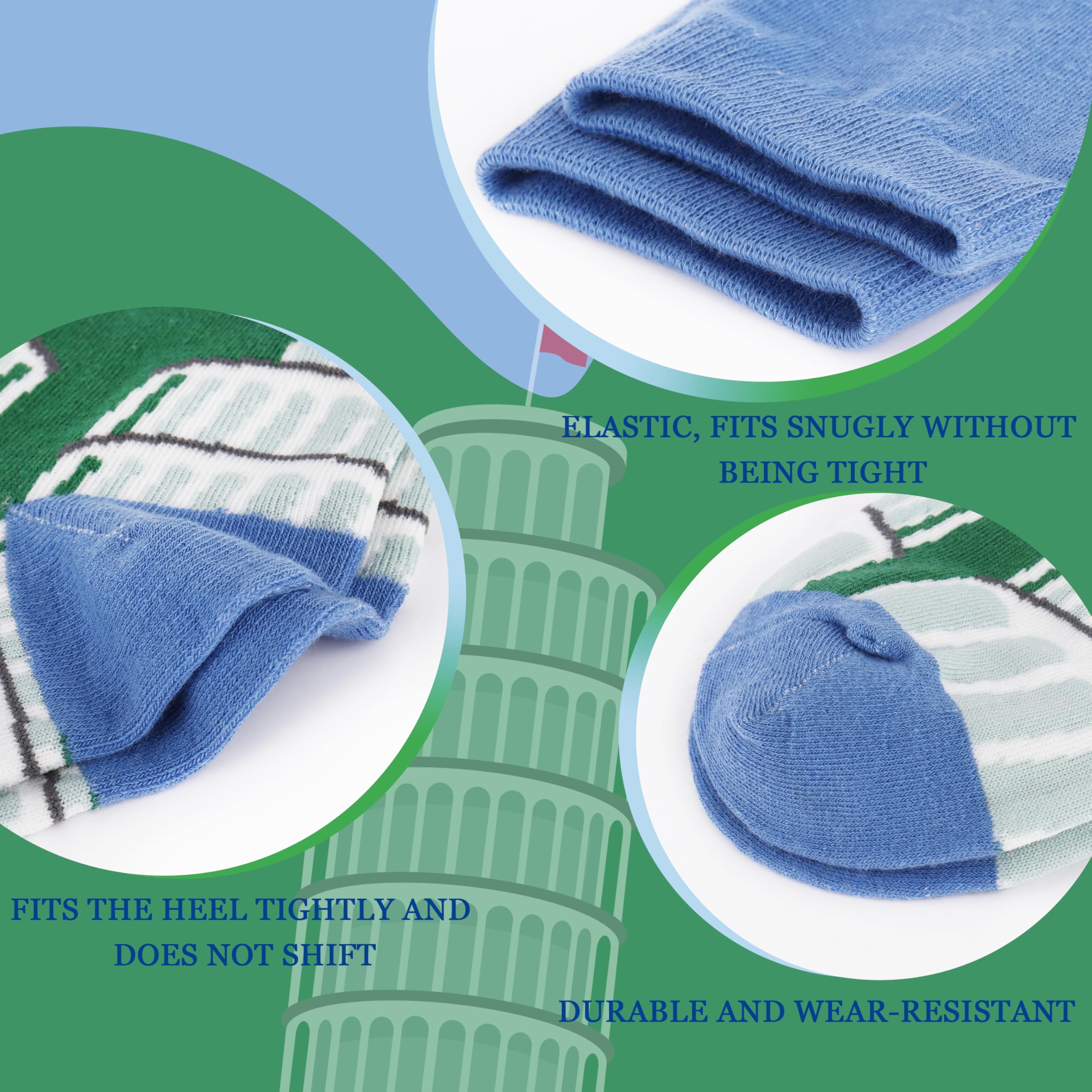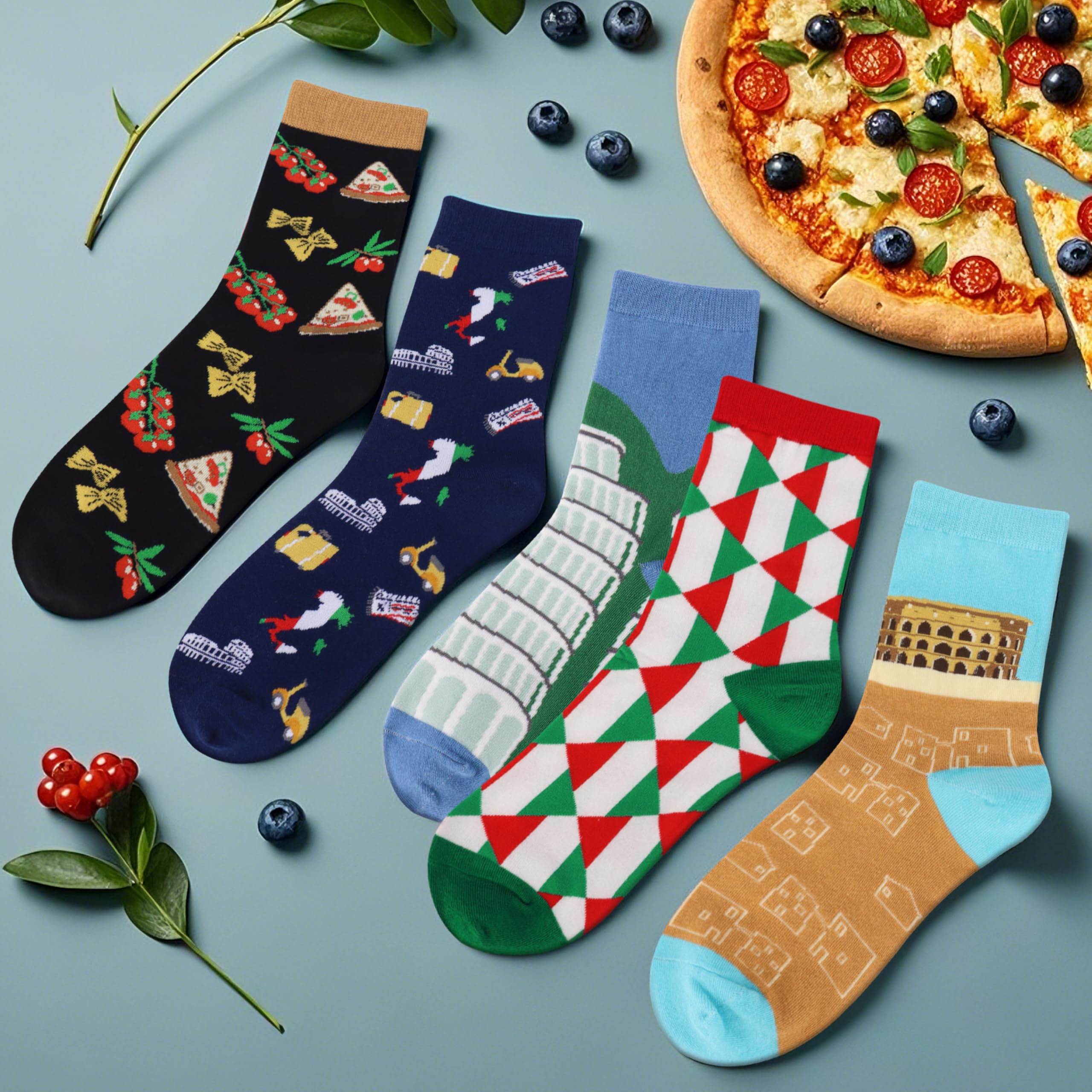 Italian-Inspired Design: Featuring jacquard patterns like the Leaning Tower of Pisa, pizza, and the Italian flag, these socks celebrate Italian culture and bring a touch of Italy to your feet.