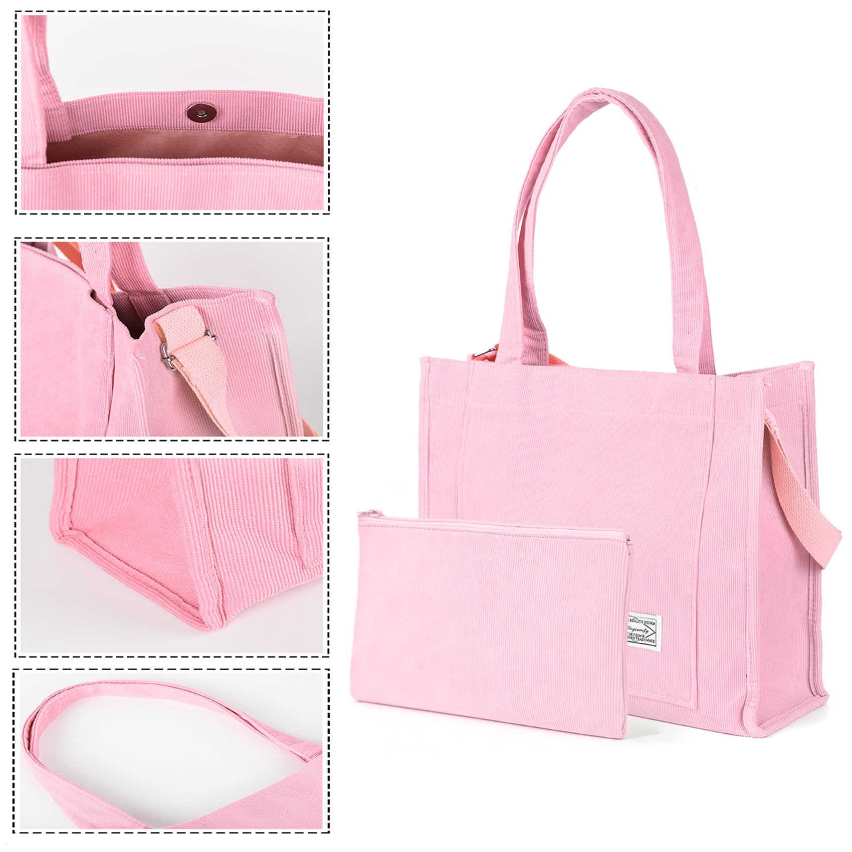 【Soft Material】This Corduroy Tote Bag for Women is made of high quality corduroy fabric and soft polyester lining inside, lightweight, durable and soft, giving you a comfortable carrying experience in various occasions